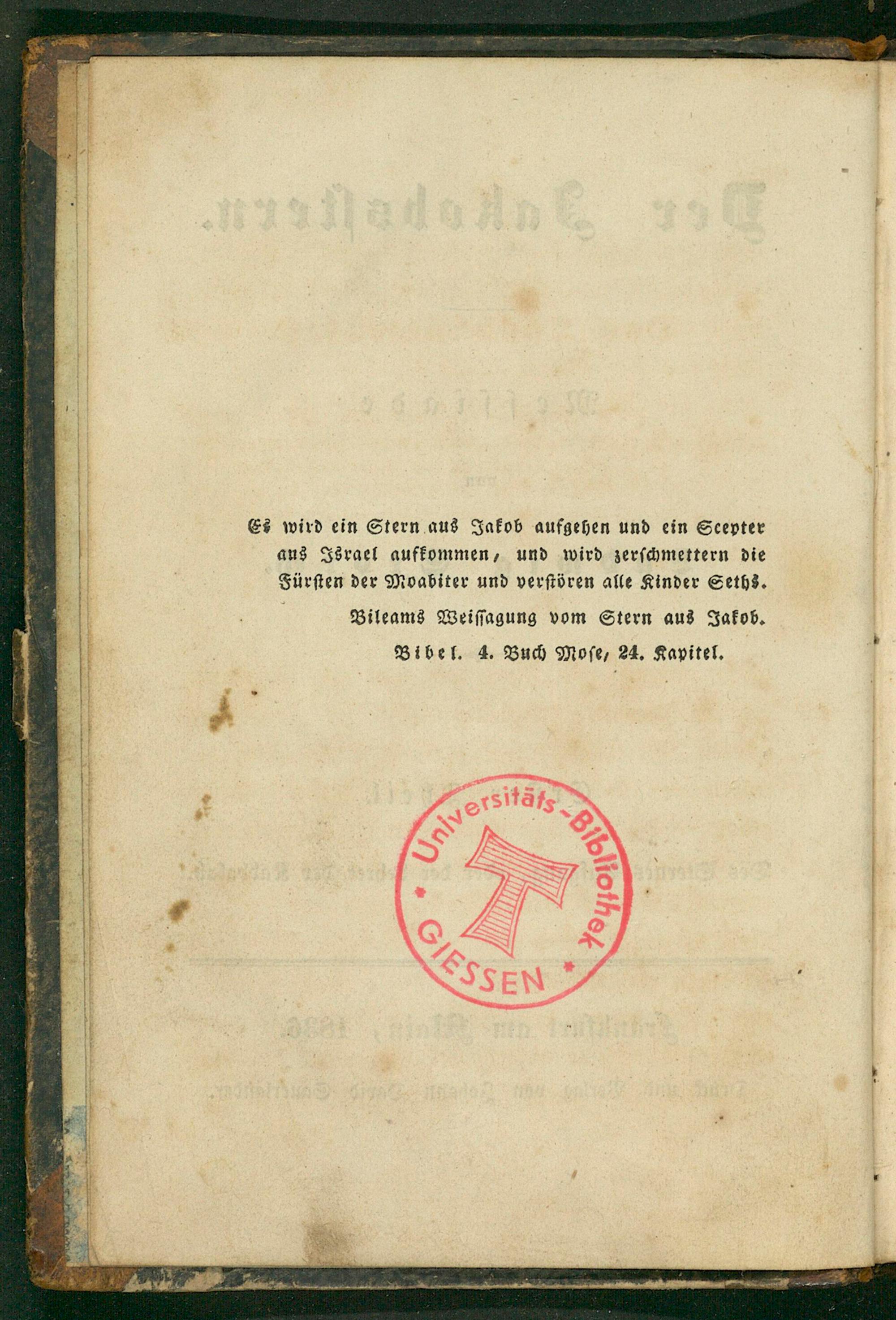 Es wird ein Stern aus Jakob aufgehen und ein Seepter aus Iösrael aufkommen, und wird zerſchmettern die Fürſten der Moabiter und verſtören alle Kinder Seths.