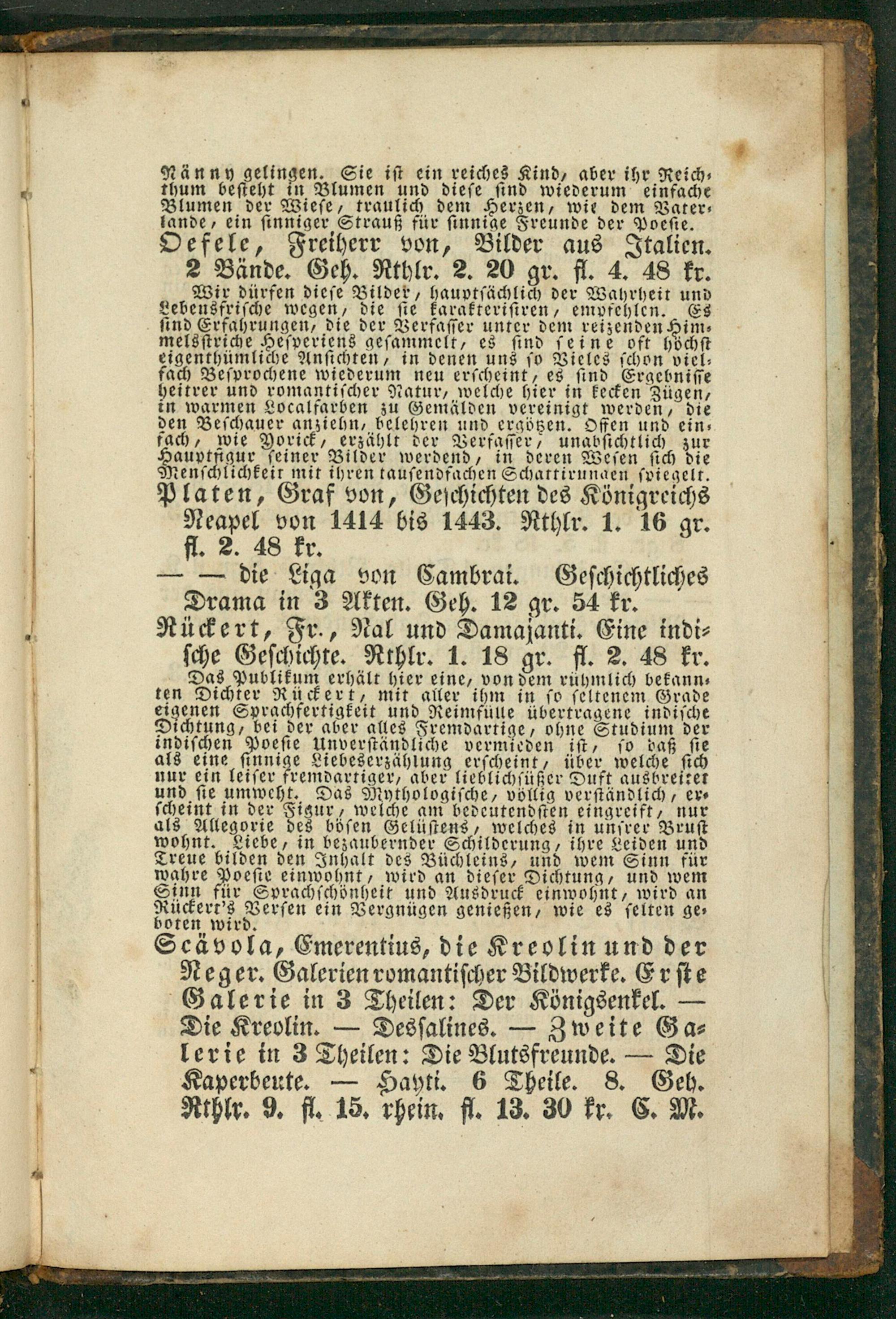 Rückert, Fr., Nal und Damajanti. Eine indi⸗ ſche Geſchichte. Rthlr. 1. 18 gr. fl. 2. 48 kr.