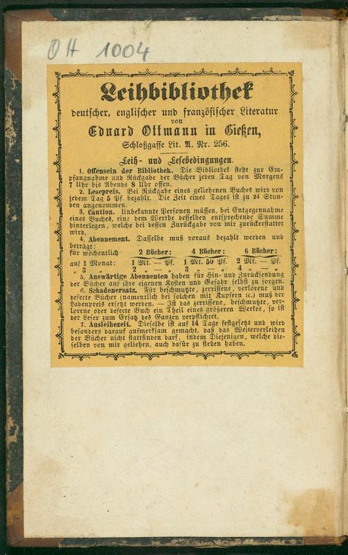 3. Caution. Unbekannte Perſonen müſſen, bei Entgegennahme eines Buches, eine dem Werthe deſſelben entſprechende Summe hinterlegen, welche bei deſſen Zurückgabe von mir zurückerſtattet wird.