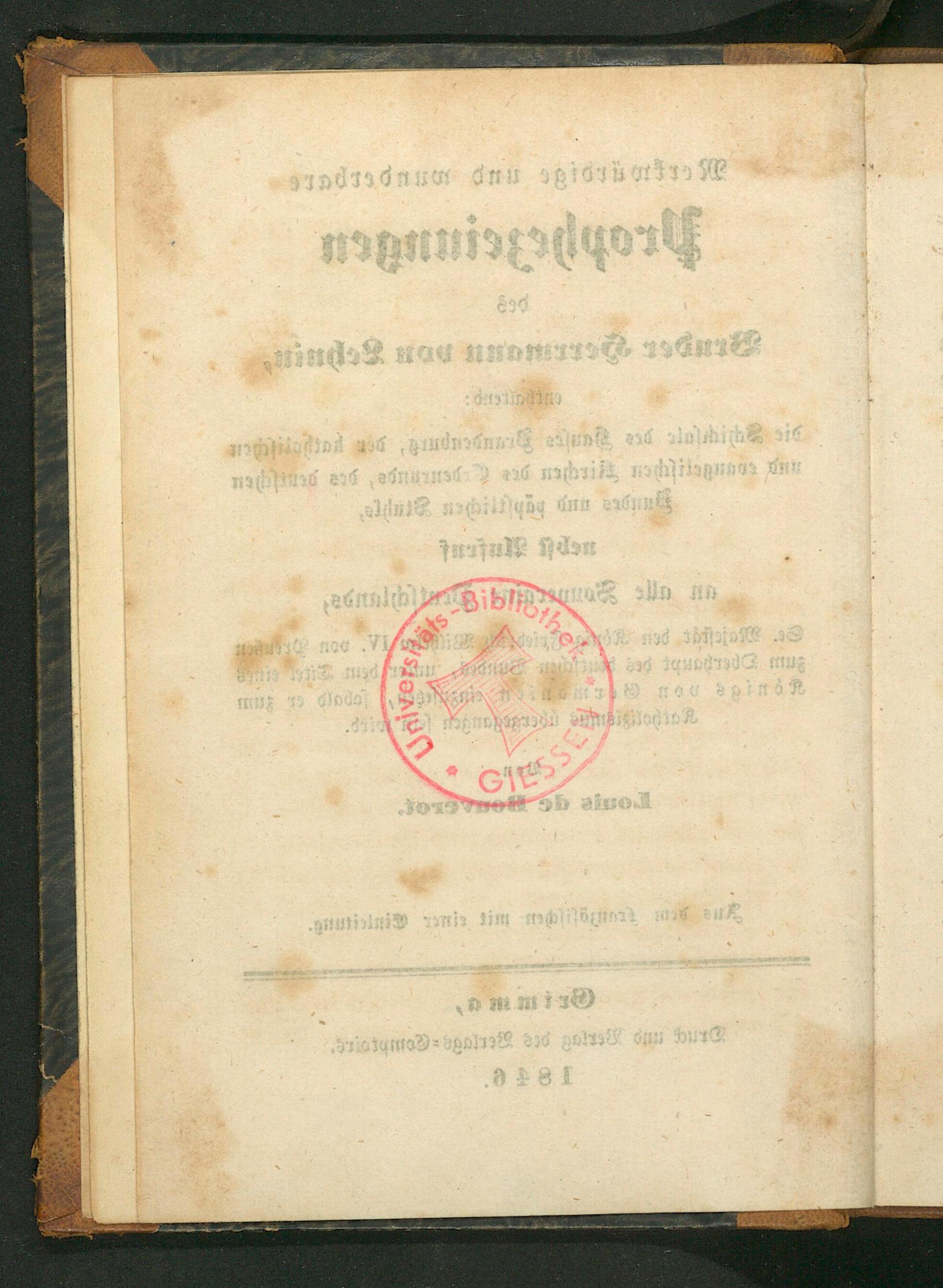 Merkwürdige und wunderbare Prophezeiungen des Bruders Hermann von Lehnin / von Louis de Bouverot. Aus d. Franz. mit e. Einleitung