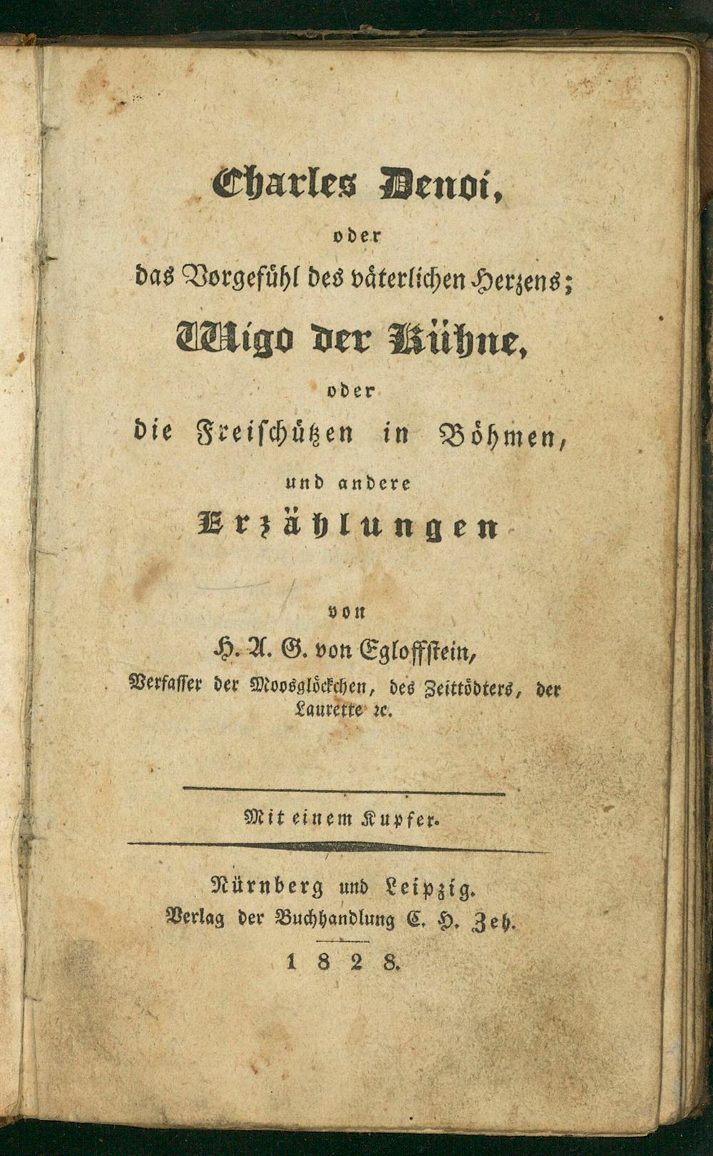 Charles Denoi, oder das Vorgefühl des väterlichen Herzens. Wigo der Kühne, oder die Freischützen in Böhmen [u.a.] / von H. A. G. Egloffstein