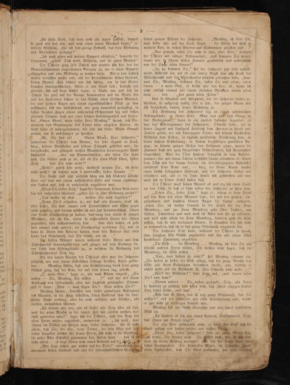 Bei den letzten Worten des Officiers aber war der Inſpector plötzlich, wie von einem elektriſchen Schlage berührt, ſtehen geblie ben... Menſing fühlte, daß eine Erſchütterung durch ſeine ganze Geſtalt ging, daß der Arm, der auf dem ſeinen lag, zittere.