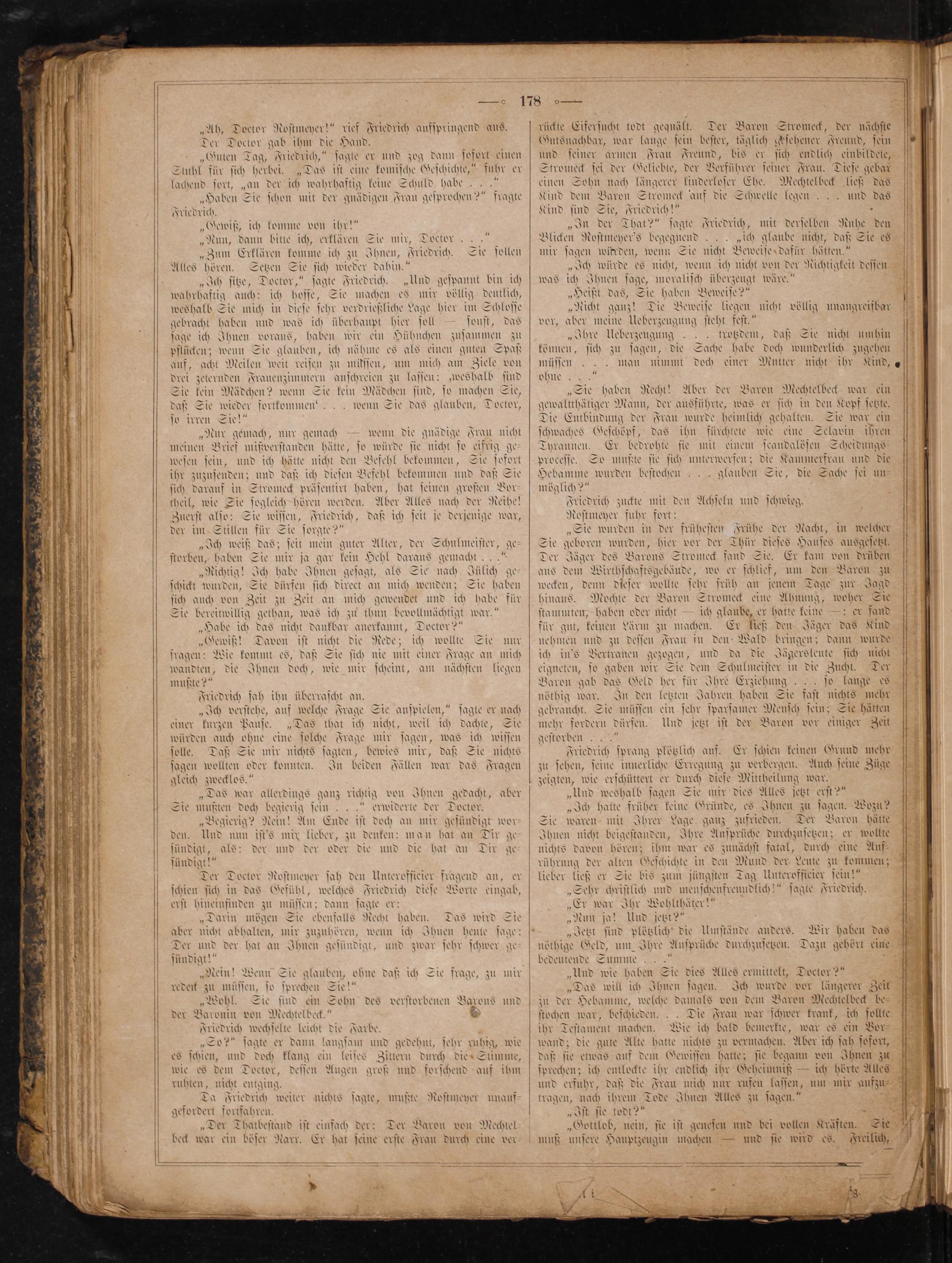den. ſündigt, ſündigt!“ Der Doctor Roſtmeyer ſah den ſchien ſich in das Gefühl, welches Friedrich erſt hineinfinden zu müſſen; dann ſagte er: „Darin mögen Sie ebenfalls Recht haben. wird aber nicht abhalten, mir zuzuhören, wenn ich Ihnen heute Der und der hat an Ihnen geſündigt, und zwar ſehr ſchwer ſündigt!“ „Nein! Wenn redel zu müſſen, ſo ſprechen Sie! „Wohl. Sie ſind ein Sohn des der Baronin von Mechtelbeck.“ Friedrich wechſelte leicht die Farbe. „So?“ ſagte er dann langſam und gedehnt, ſehr vuhig, wie es ſchien, und doch klang ein leiſes Zittern durch die Stimme, wie dem Doctor, deſſen Augen groß und forſchend auf ihm ruhten, nicht entging. Da Friedrich weiter gefordert fortfahren. „Der Thatbeſtand beck war ein böſer Naxr.