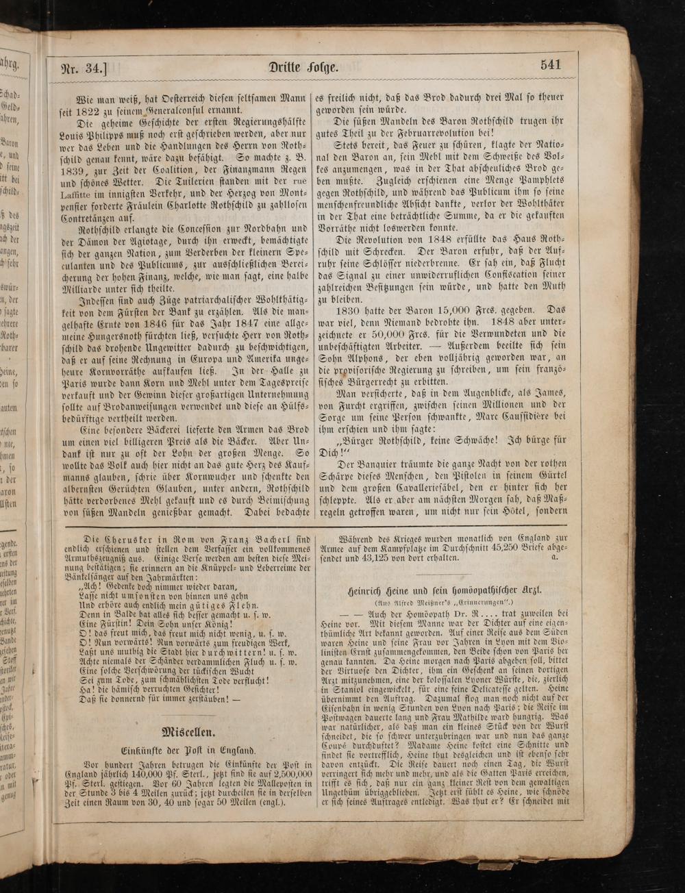 Stets bereit, das Feuer zu ſchüren, klagte der Natio⸗ nal den Baron an, ſein Mehl mit dem Schweiße des Vol⸗ kes anzumengen, was in der That abſcheuliches Brod ge⸗ ben mußte. Zugleich erſchienen eine Menge Pamphlets gegen Rothſchild, und während das Publicum ihm ſo ſeine menſchenfreundliche Abſicht dankte, verlor der Wohlthäter in der That eine beträchtliche Summe, da er die gekauften Vorräthe nicht loswerden konnte.