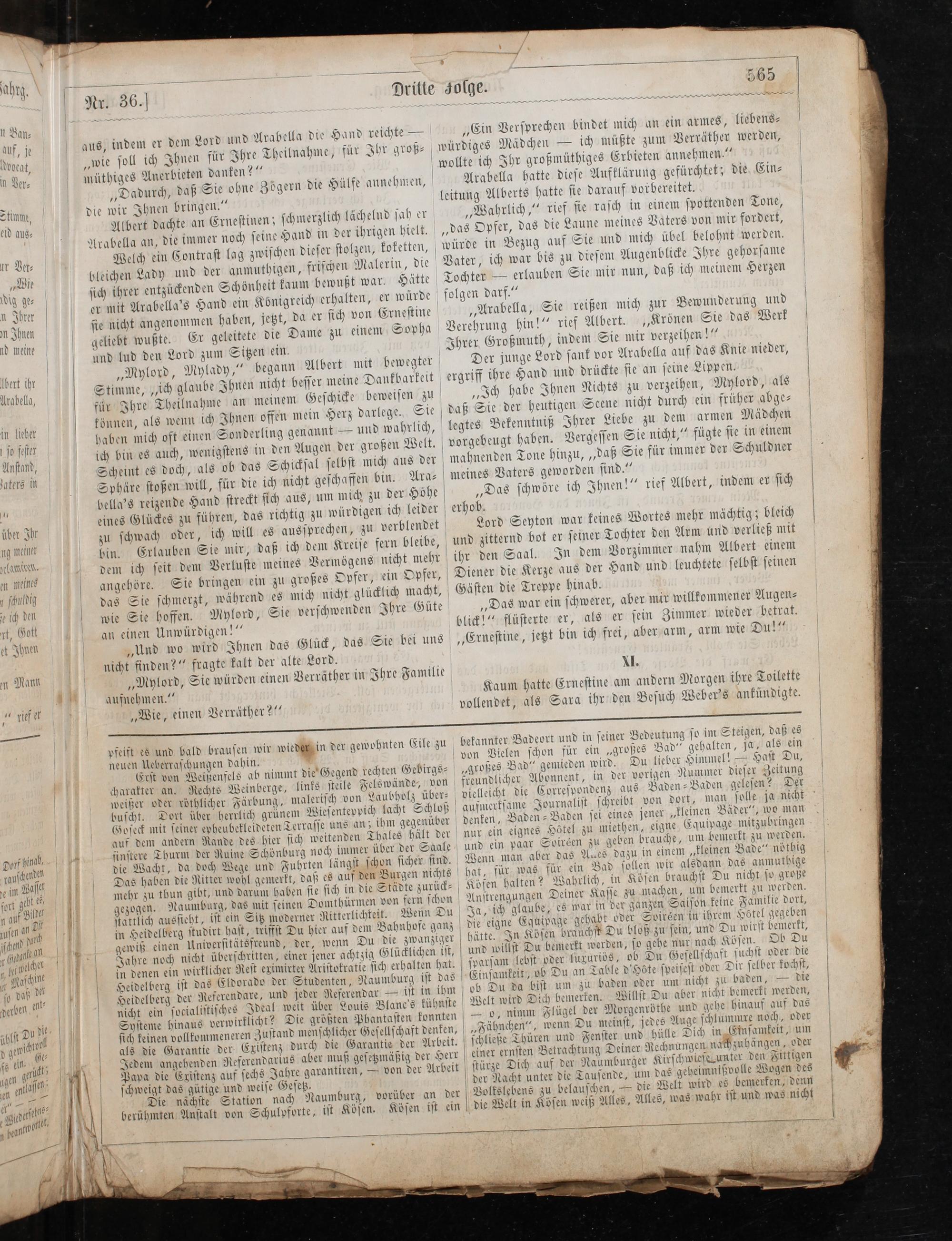 „Wahrlich,“ rief ſie raſch in einem ſpottenden Tone, „das Opfer, das die Laune meines Vaters von mir fordert, würde in Bezug auf Sie und mich übel belohnt werden. Vater, ich war bis zu dieſem Augenblicke Ihre gehorſame Tochter— erlauben Sie mir nun, daß ich meinem Herzen folgen darf.“