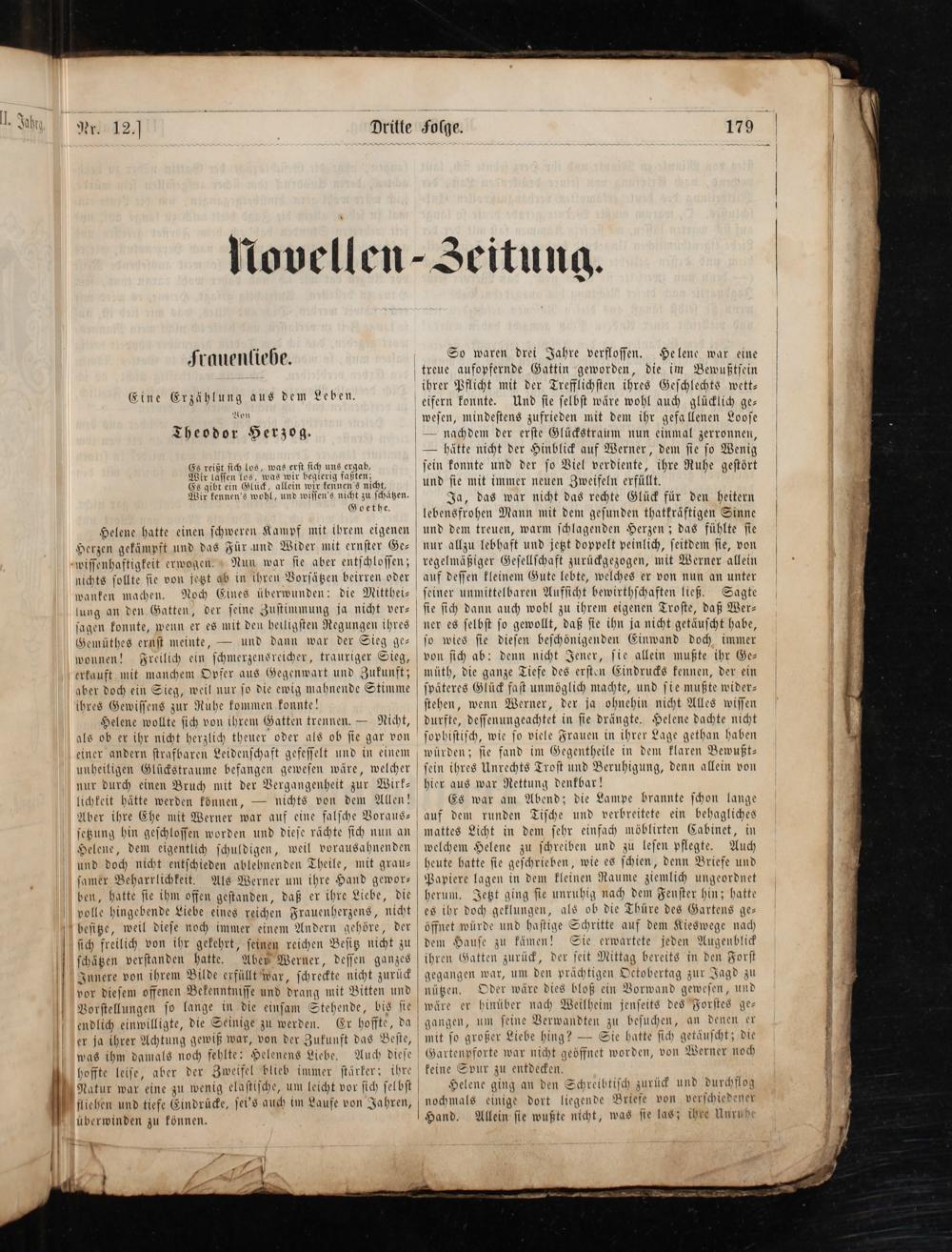 regelmäßiger Geſellſchaft zurückgezogen, mit Werner allein auf deſſen kleinem Gute lebte, welches er von nun an unter ſeiner unmittelbaren Aufſicht bewirthſchaften ließ. Sagte ſie ſich dann auch wohl zu ihrem eigenen Troſte, daß Wer⸗ ner es ſelbſt ſo gewollt, daß ſie ihn ja nicht getäuſcht habe, ſo wies ſie dieſen beſchönigenden Einwand doch immer von ſich ab: denn nicht Jener, ſie allein mußte ihr Ge⸗ müth, die ganze Tiefe des erſten Eindrucks kennen, der ein ſpäteres Glück faſt unmöglich machte, und ſie mußte wider⸗ ſtehen, wenn Werner, der ja ohnehin nicht Alles wiſſen durfte, deſſenungeachtet in ſie drängte. Helene dachte nicht ſophiſtiſch, wie ſo viele Frauen in ihrer Lage gethan haben würden; ſie fand im Gegentheile in dem klaren Bewußt⸗ ſein ihres Unrechts Troſt und Beruhigung, denn allein von hier aus war Rettung denkbar!