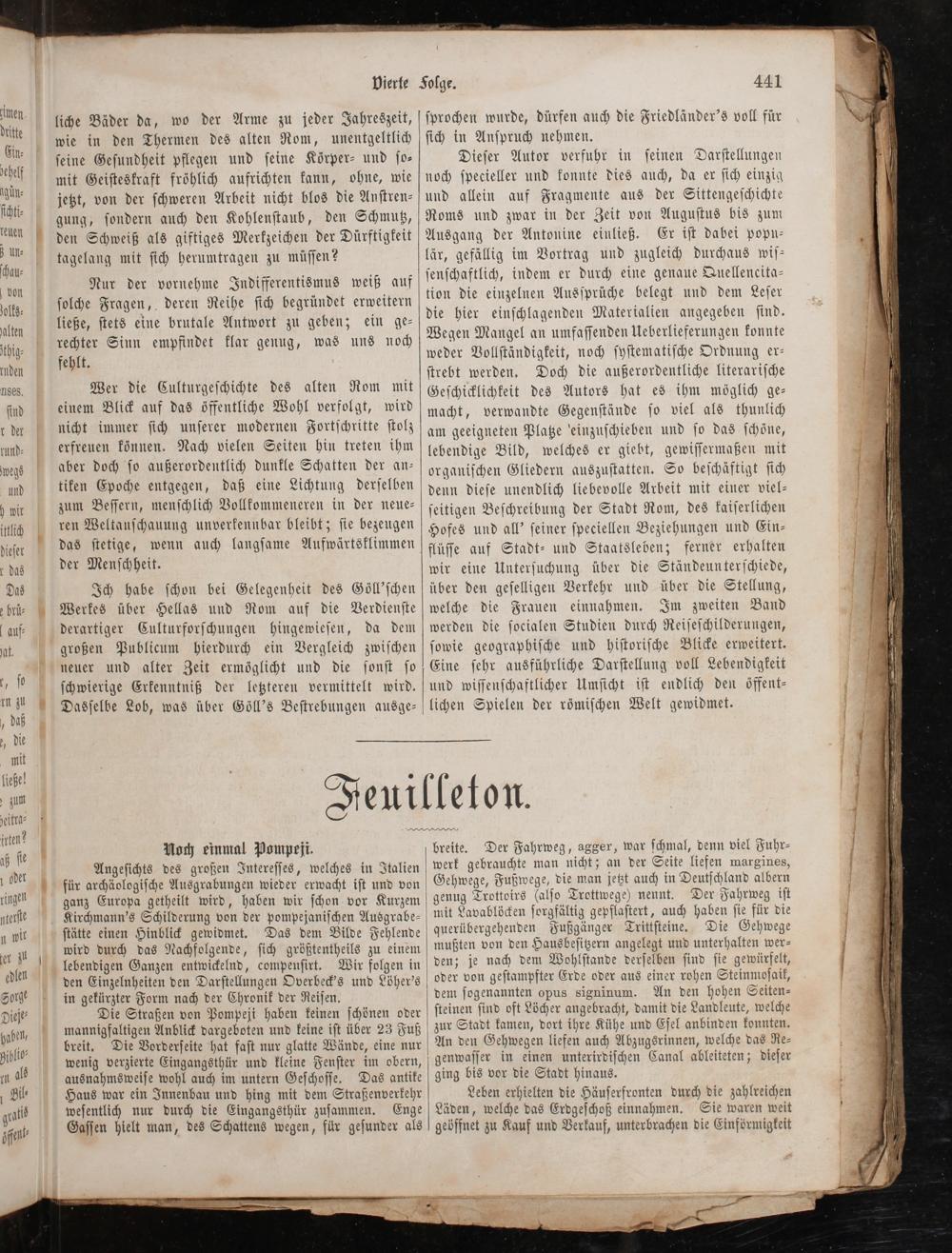Angeſichts des großen Intereſſes, welches in Italien für archäologiſche Ausgrabungen wieder erwacht iſt und von ganz Europa getheilt wird, haben wir ſchon vor Kurzem Kirchmann's Schilderung von der pompejaniſchen Ausgrabe⸗ ſtätte einen Hinblick gewidmet. Das dem Bilde Fehlende wird durch das Nachfolgende, ſich größtentheils zu einem Wir folgen in den Einzelnheiten den Darſtellungen Overbeck's und Löher's in gekürzter Form nach der Chronik der Reiſen.