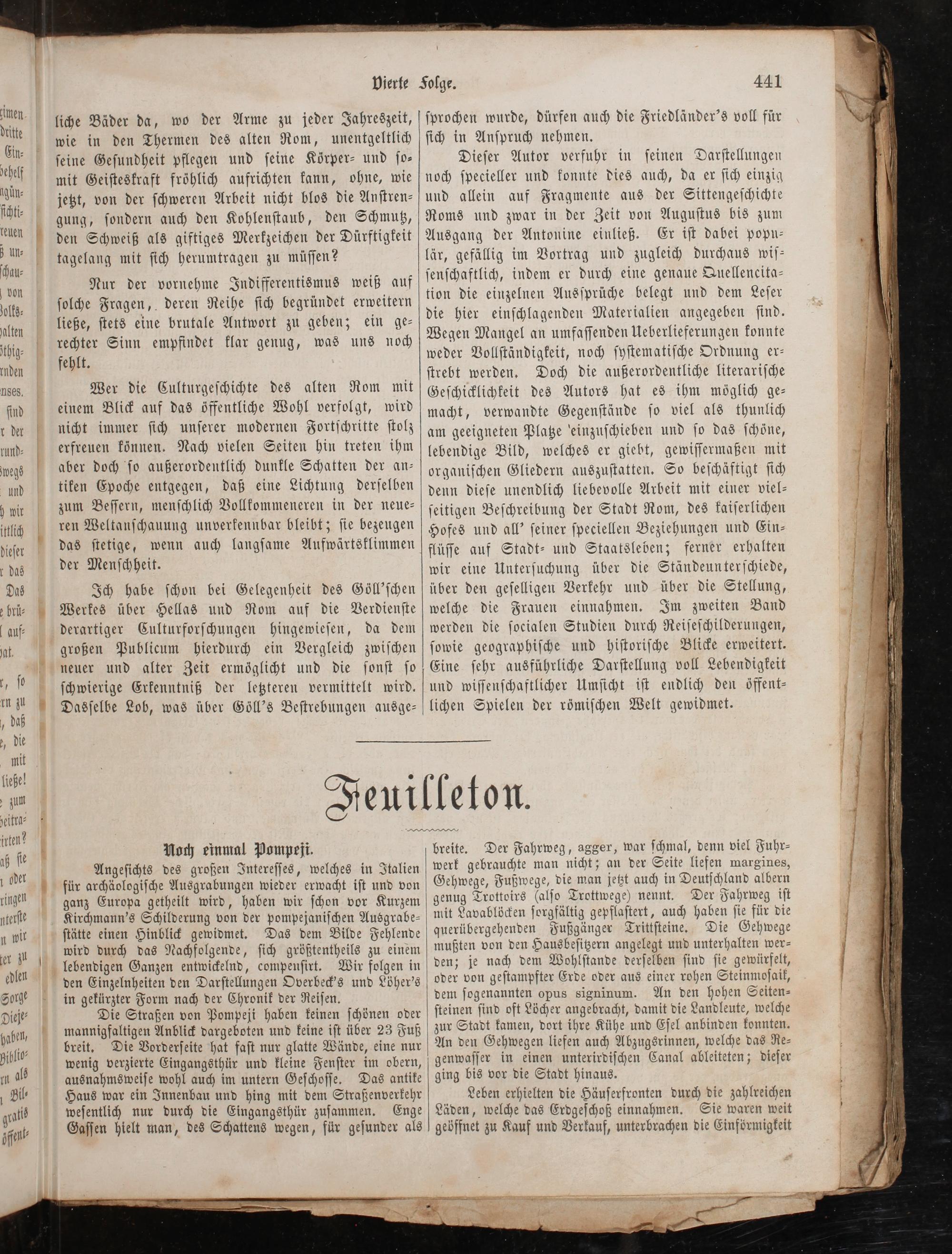 Die Straßen von Pompeji haben keinen ſchönen oder mannigfaltigen Anblick dargeboten und keine iſt über 23 Fuß breit. Die Vorderſeite hat faſt nur glatte Wände, eine nur