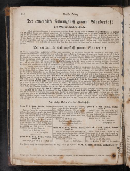 Der concentrirte Nahrungsſtoff genannt Wunderſaft des Naturforſcher Koch.
