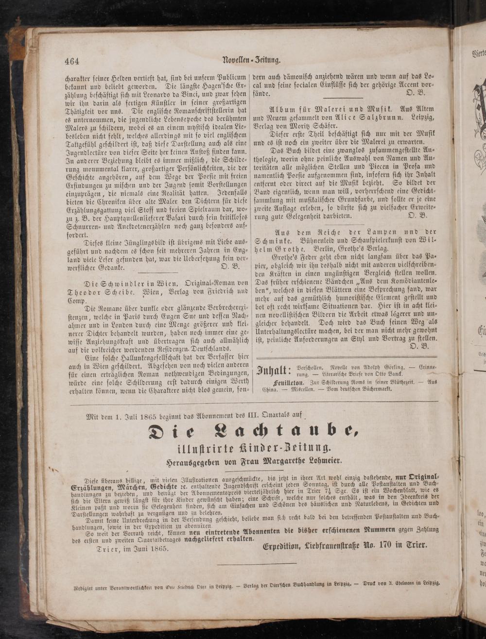 Mit dem 1. Juli 1865 beginnt das Abonnement des III. Quartals auf
