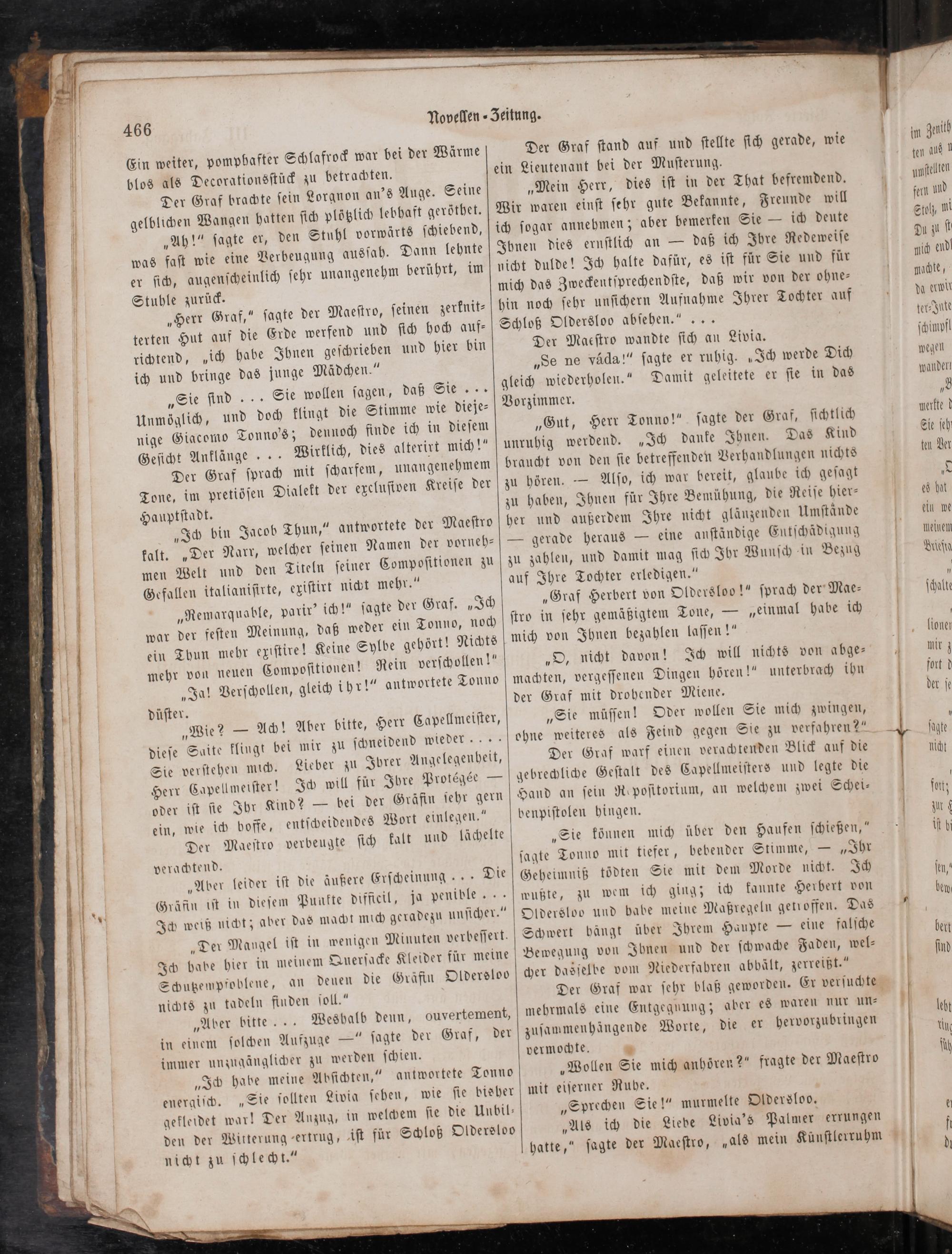 „O, nicht davon! Ich will nichts von abge⸗ machten, vergeſſenen Dingen hören!“ unterbrach ihn der Graf mit drohender Miene. ¹ Aber bitte, Herr Capellmeiſter,„Sie müſſen! Oder wollen Sie mich zwingen, mir zu ſchneidend wieder.... ohne weiteres als Feind gegen Sie zu verfahren?“ Lieber zu Ibrer Angelegenheit, Der Graf warf einen verachtenden Blick auf die Ich will für Ihre Protégée— gebrechliche Geſtalt des Capellmeiſters und legte die d?— bei der Gräfin ſehr gern Hand an ſein Repoſitorium, an welchem zwei Schei⸗ Wort einlegen.“ venpiſtolen hingen.
