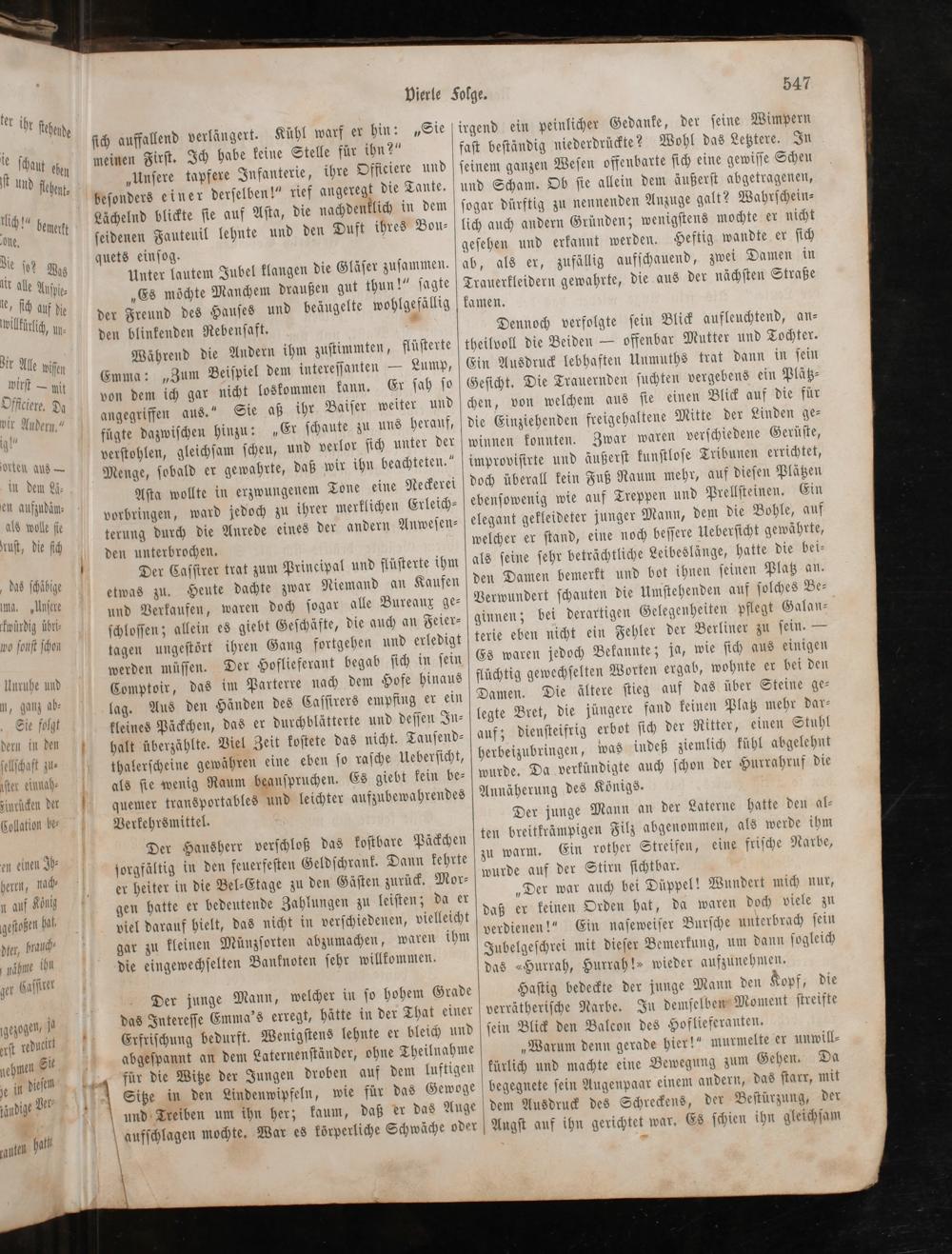 Der Caſſirer trat zum Principal und flüſterte ihm etwas zu. Heute dachte zwar Niemand an Kaufen und Verkaufen, waren doch ſogar alle Bureaux ge⸗ ſchloſſen; allein es giebt Geſchäfte, die auch an Feier⸗ tagen ungeſtört ihren Gang fortgehen und erledigt werden müſſen. Comptoir, das im Parterre nach dem Hofe hinaus lag. Aus den Händen des Caſſirers empfing er ein kleines Päckchen, das er durchblätterte und deſſen In⸗ halt überzählte. Viel Zeit koſtete das nicht. Tauſend⸗ thalerſcheine gewaͤhren eine eben ſo raſche Ueberſicht, als ſie wenig Raum beanſpruchen. Es giebt kein be⸗ quemer transportables und leichter aufzubewahrendes Verkehrsmittel.