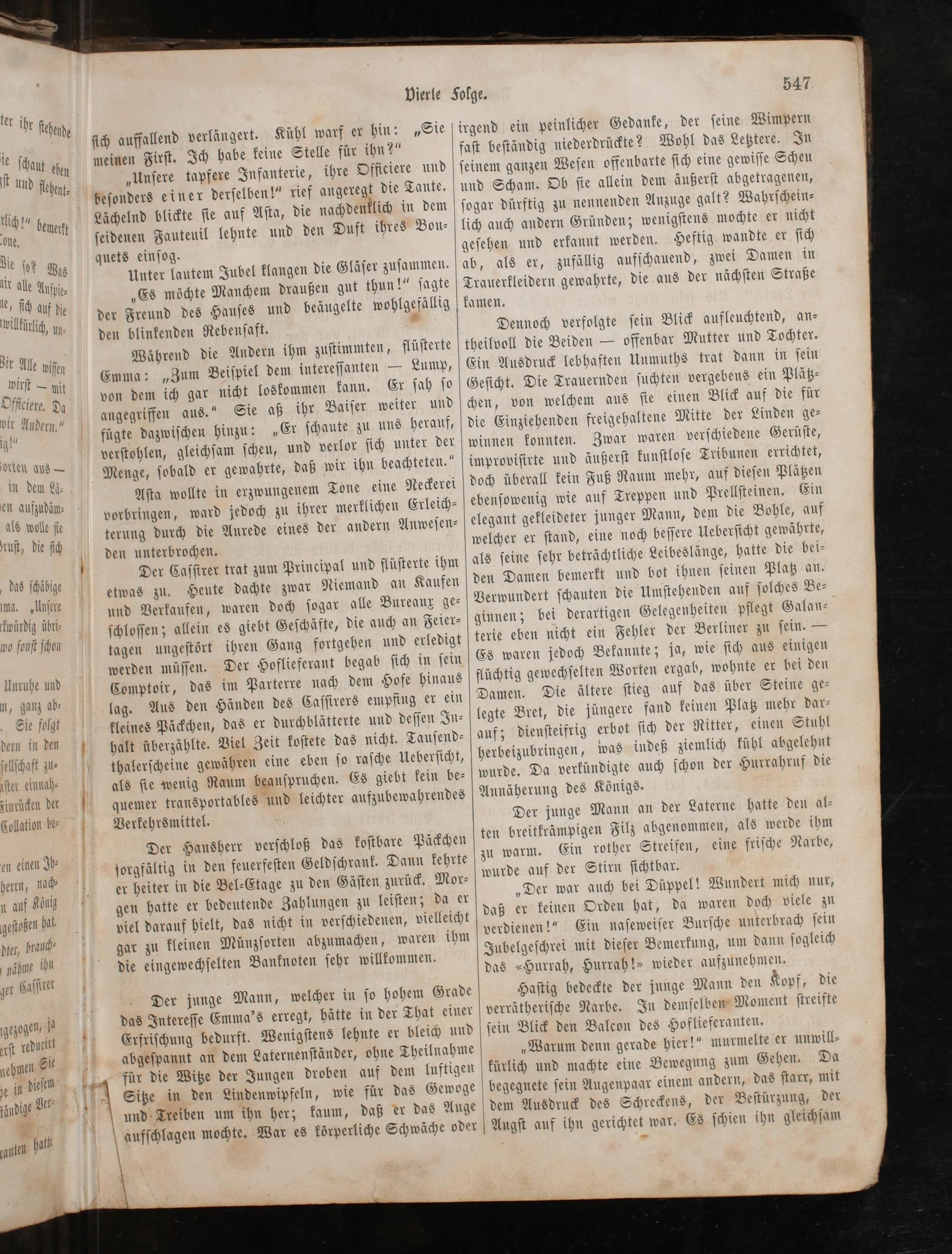 „Der war auch bei Düppel! Wundert mich nur, daß er keinen Orden hat, da waren doch viele zu verdienen!“ Ein naſeweiſer Burſche unterbrach ſein Jubelgeſchrei mit dieſer Bemerkung, um dann ſogleich das Hurrah, Hurrah!» wieder aufzunehmen.