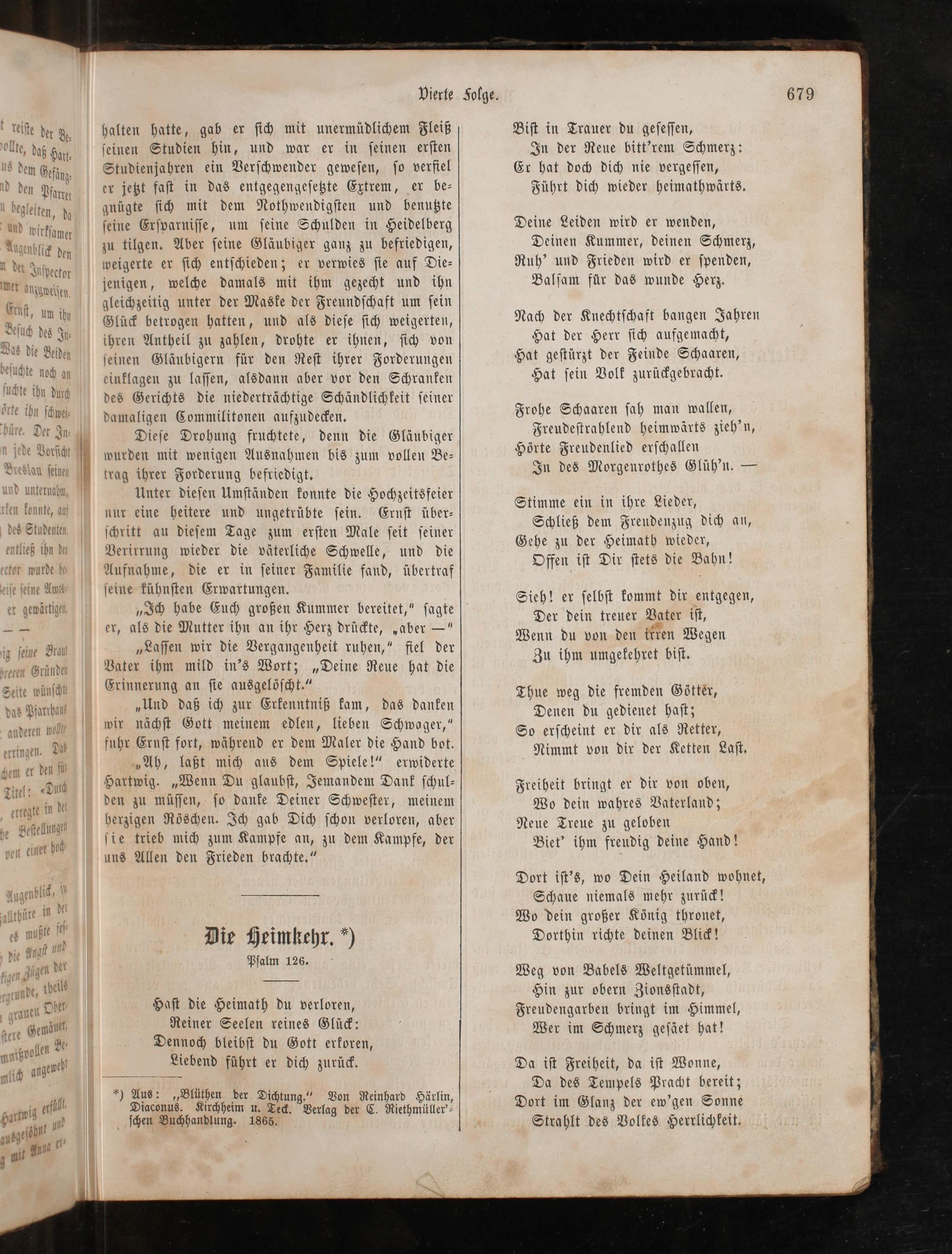 *) Aus:„Blüthen der Dichtung.“ Von Reinhard Härlin, Diaconus. Kirchheim u. Teck. Verlag der C. Riethmüller'⸗ ſchen Buchhandlung. 1865.