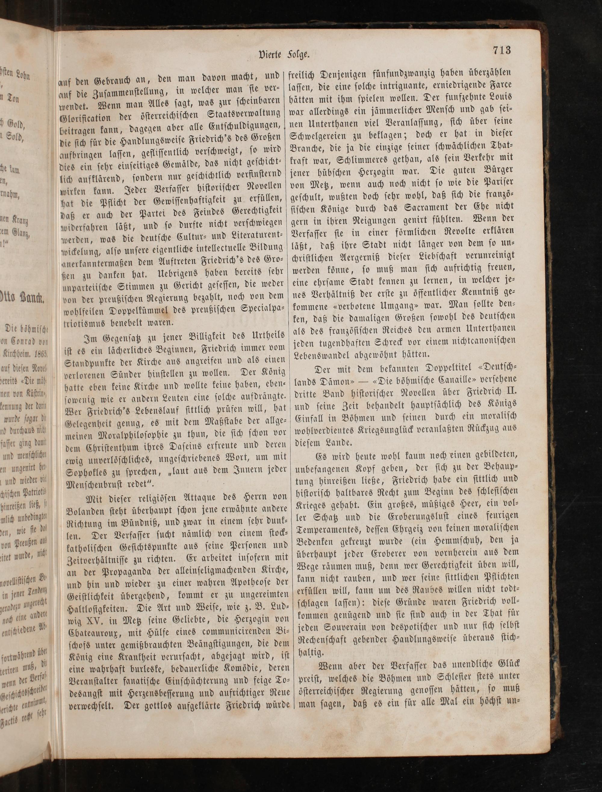 Der mit dem bekannten Doppeltitel ⸗Deutſch⸗ lands Dämon⸗—»Die böhmiſche Canaille⸗ verſehene dritte Band hiſtoriſcher Novellen über Friedrich II. und ſeine Zeit behandelt hauptſächlich des Königs Einfall in Böhmen und ſeinen durch ein moraliſch wohlverdientes Kriegsunglück veranlaßten Rückzug aus dieſem Lande.