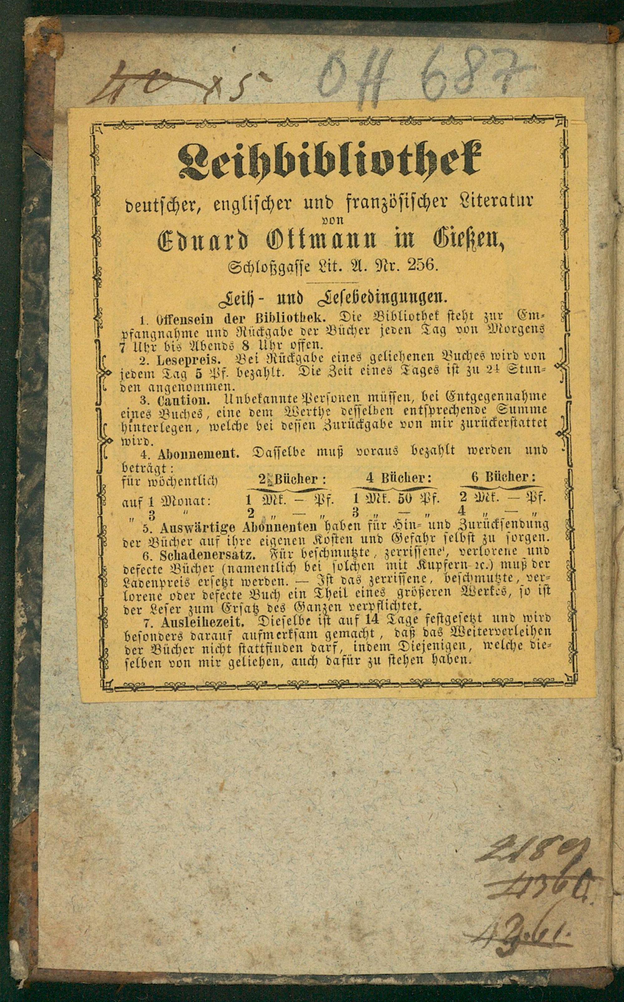 — von 6 Eduard Oktmann in Gießen, Schloßgaſſe Lit. A. Nr. 256.