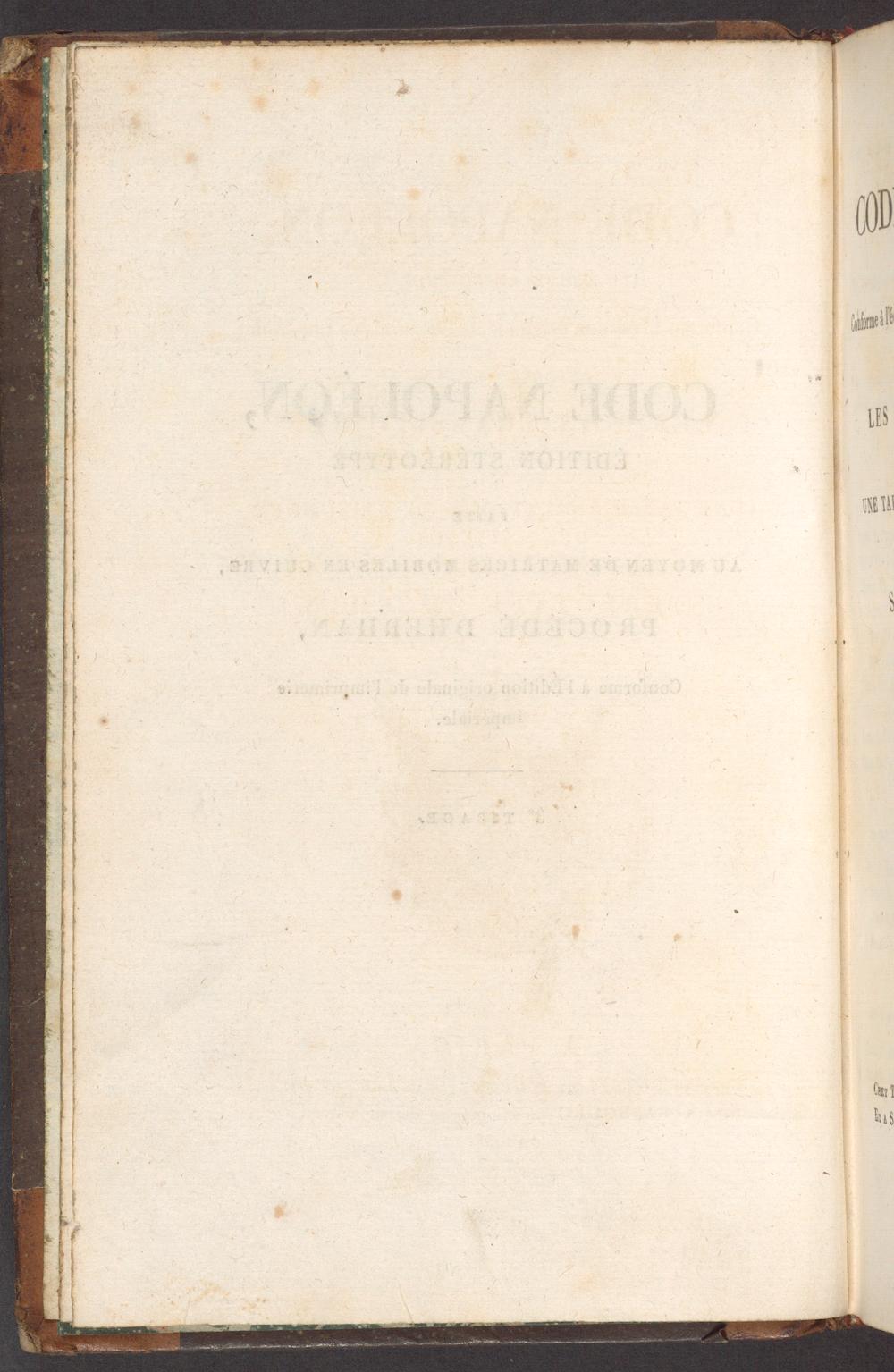 Code Napoléon : À Laquelle On A Ajouté Les Lois Transitoires Et Une Table Analytique Et Raisonnée Des Matières / Stéréotype D'Herhan
