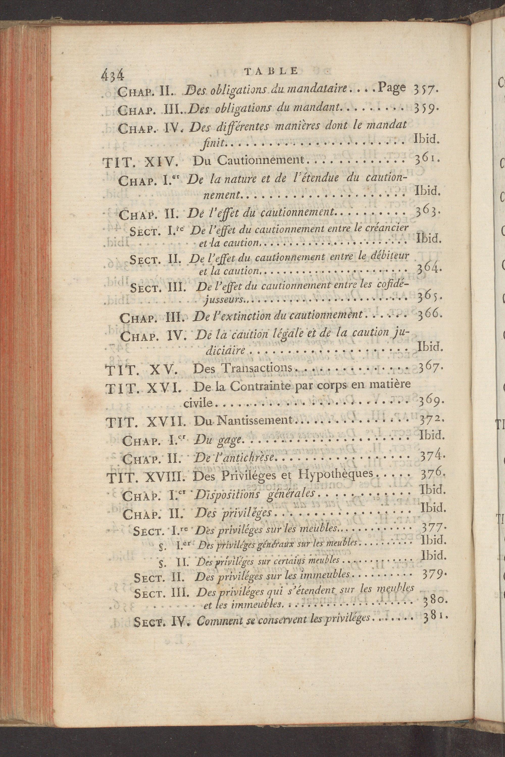 434 A TABLE Cuar. IL. Des obligations du mandataire....Page 357.