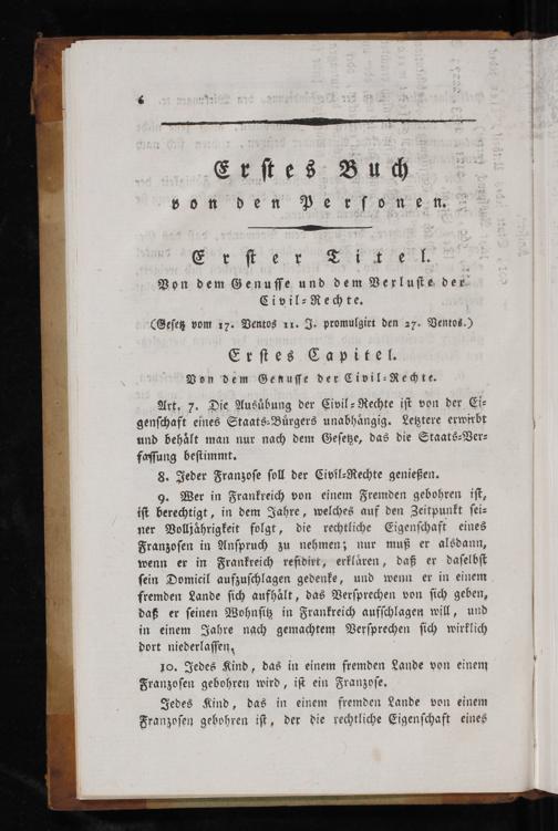 10. Jedes Kind, das in einem fremden Lande von einem Franzoſen gebohren wird, iſt ein Franzoſe.