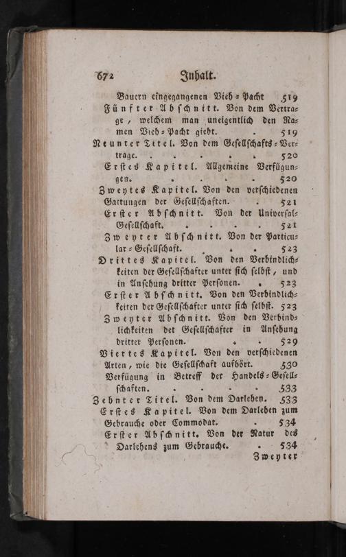 Verfügung in Betreff der Handels⸗Geſell⸗ ſchaften..... 333 Zebnter Titel. Von dem Oarlehen. 533 Erſtes Kapitel. Von dem Oarlehen zum Gebrauche oder Commodat. 3 534 Erſter Abſchnitt. Von der Ratur des Darlehens zum Gebrauche.. 3534 Zweyter