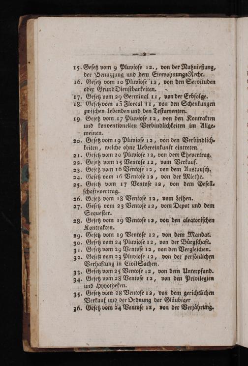 15. Geſetz vom 9 Pluvioſe 12., von der Nutznießung, der Benuzzung und dem EinwohnungsRecht. 16. Geſetz vom 10 Pluvioſe 12, von den Servituden