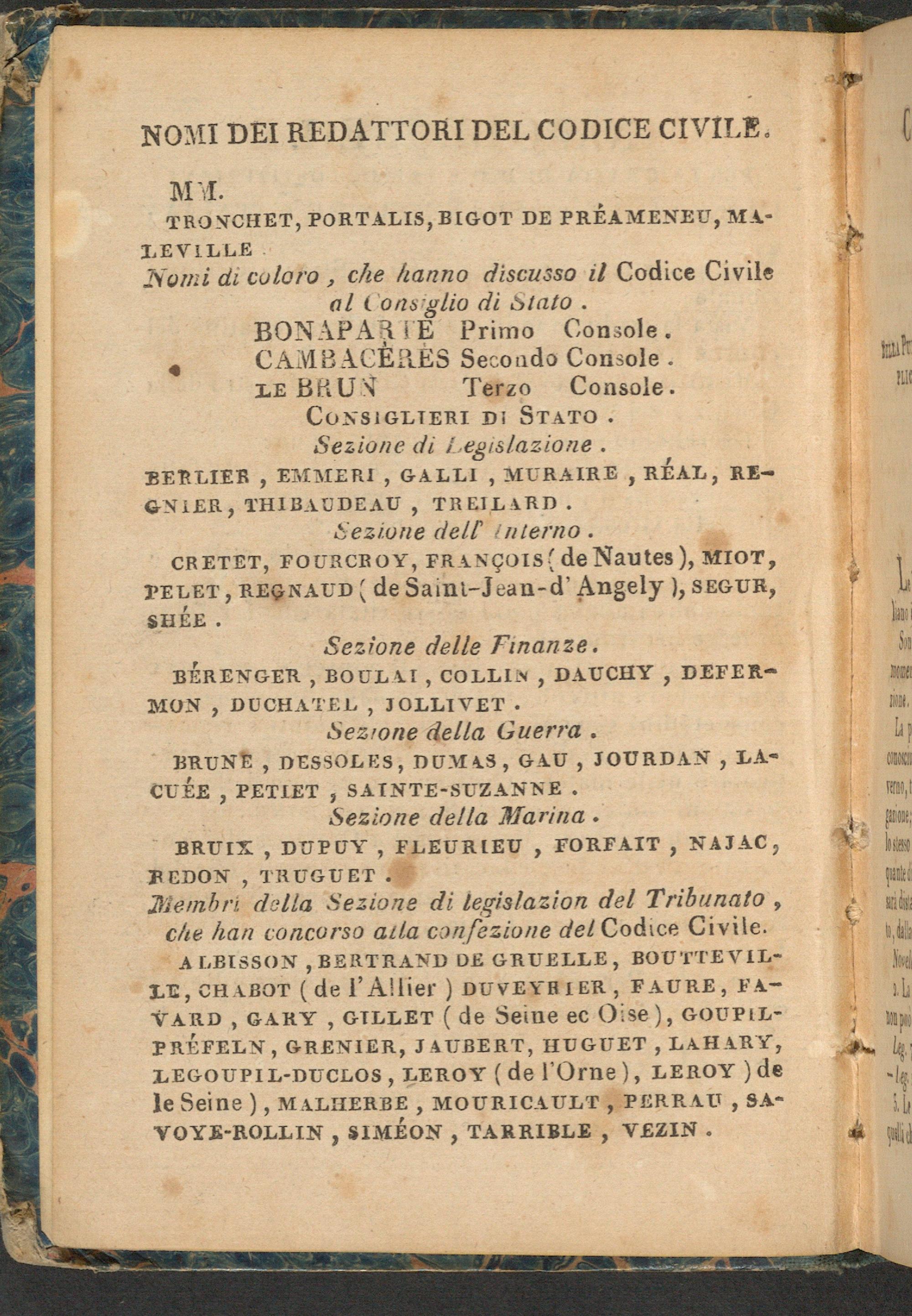 Nomi di coloro, che hanno discusso il Codice Civile al Cons iglio di Stato.