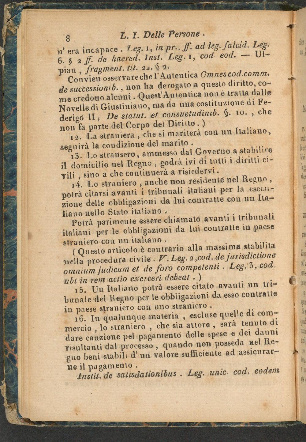 Convien osservareche l'Autentica 0mzescod.comm. de successionib., mon ha derogato a questo diritto, co- me credomo alcuni. Quest'Autentica none tratta dalle Novelle dì Giustiniano, ma da una costituzione di Fe- De statut. et consuetudinid.$. 10., che non fa parte del Corpo del Diriito.)