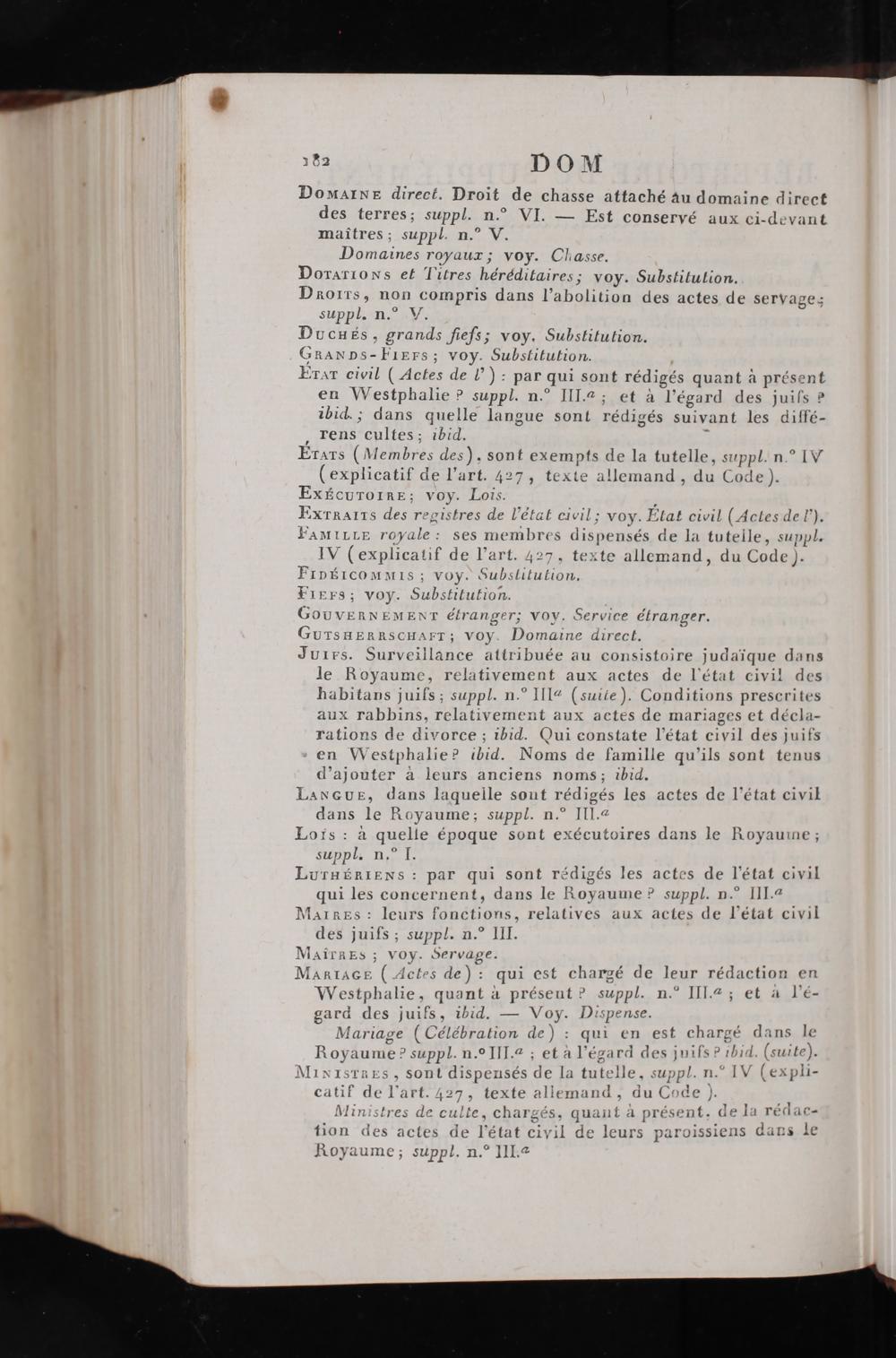 Erar eioil( Aetes de 1*) par qui sont rédigés quant à présent en Westphalie suppl. n.“ III.a; et à l'egard des juifs* ibid.; dans quelle langue sont rédigés suivant les diffé- rens cultes; ibid.
