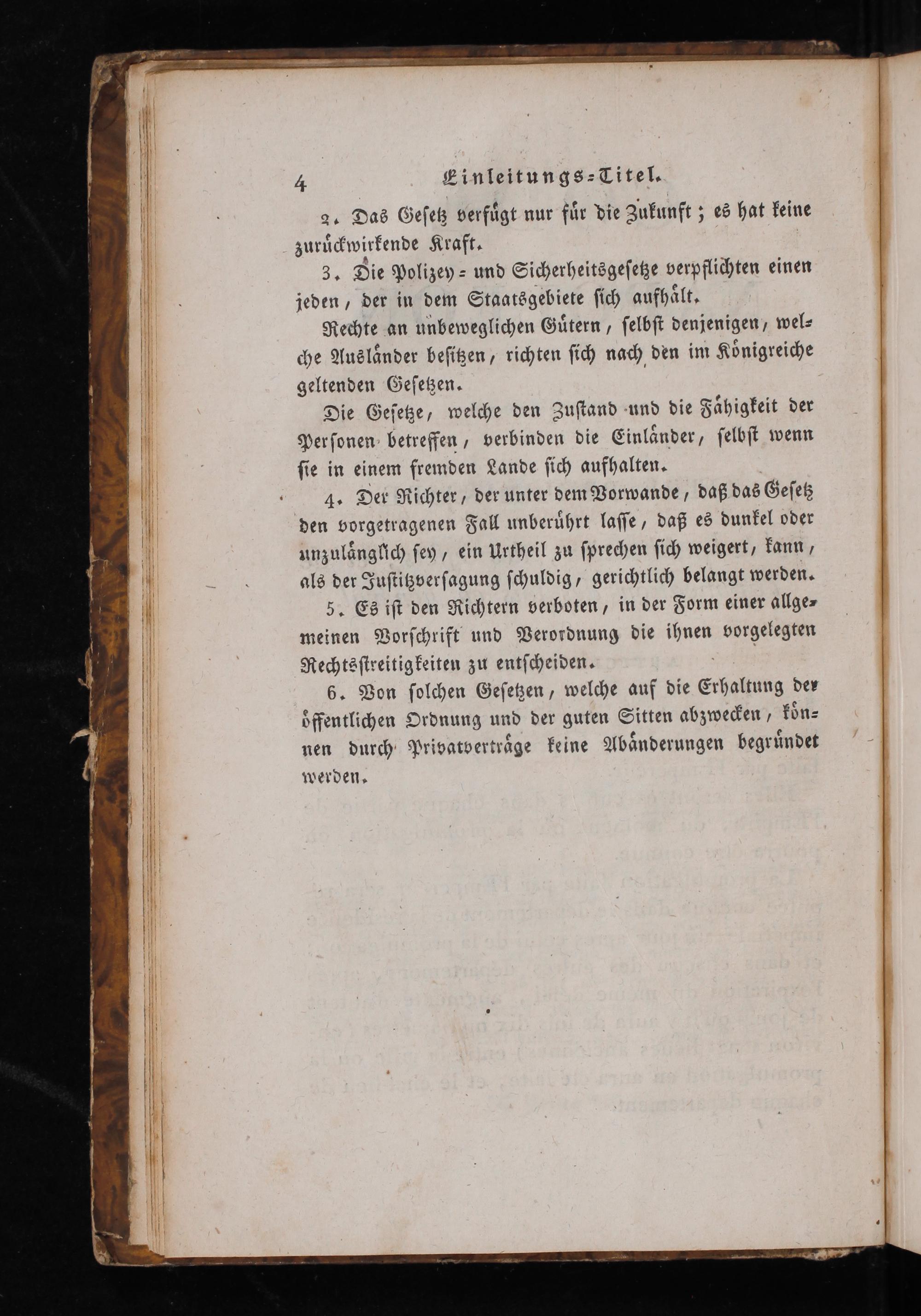 6. Von ſolchen Geſetzen, welche auf die Erhaltung der oͤffentlichen Ordnung und der guten Sitten abzwecken, koͤn⸗ nen durch Privatvertrage keine Abaͤnderungen begruͤndet werden.