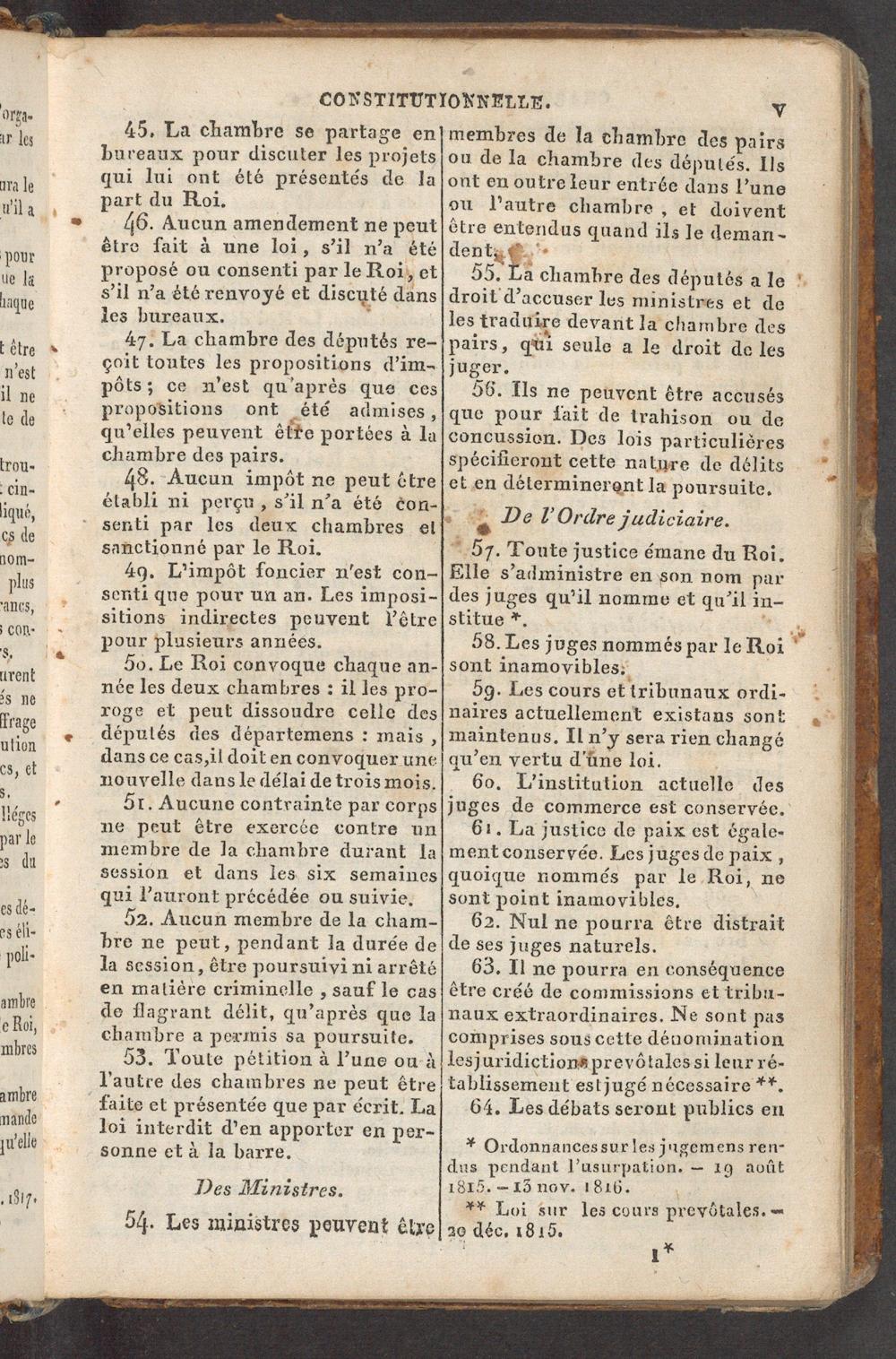 5g. Les cours ettribunaux ordi- aires actuellement existans sont maintenus, Îln’y sera rien changé qu’en vertu d’üne loi.