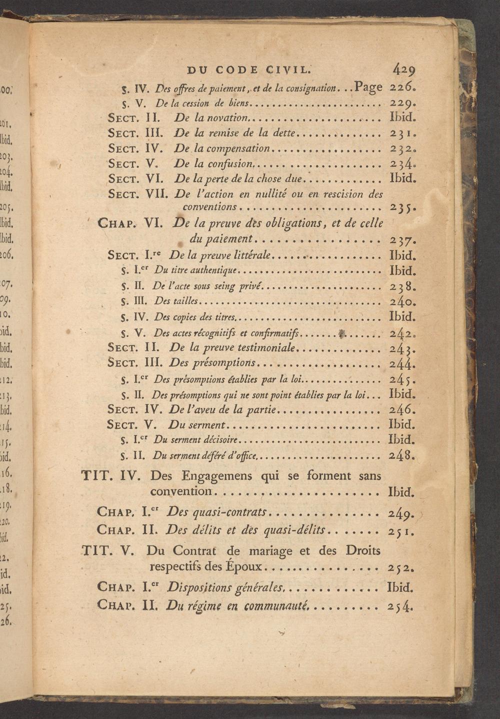TIT. V. Du Contrat de id et des Droits respectifs des Époux................ 252,