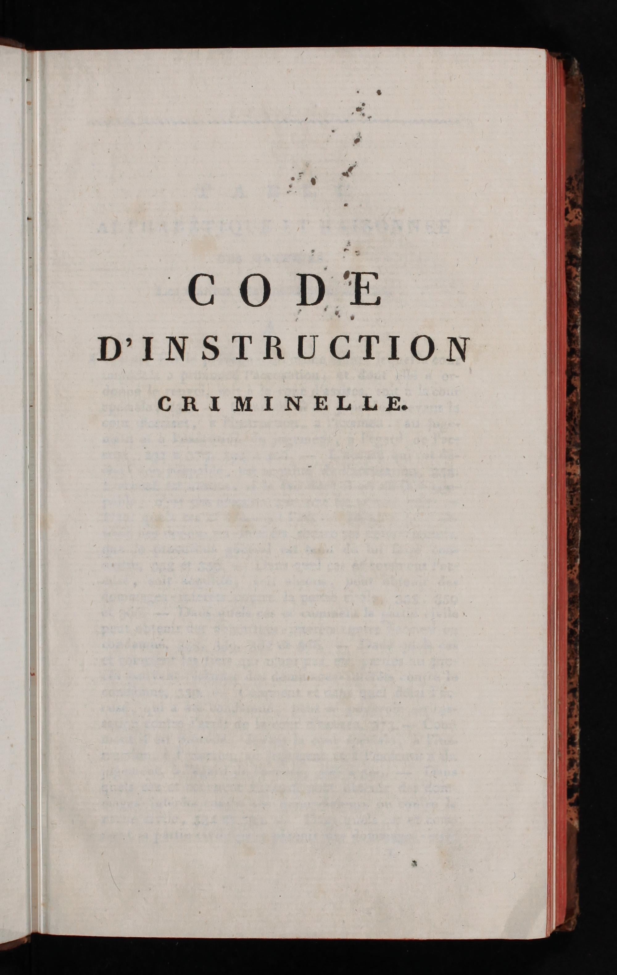 Code D'Instruction Criminelle : suivi des Motifs exposés par les Conseillers d'Etat, et des Rapports faits par la Commission de Législation du Corps Légilatif, sur chacune de lois qui composent le Code : Avec une Table Alphabétique et Raissonnée, qui réunit sur chaque matirère relatives, et qui indique, à l'article de chaque fonctionnaire ou officier public, routes les fonctions qui lui appartiennent, ou qu'il est tenu de remplir, en matière criminelle, correctionnelle ou de simple police