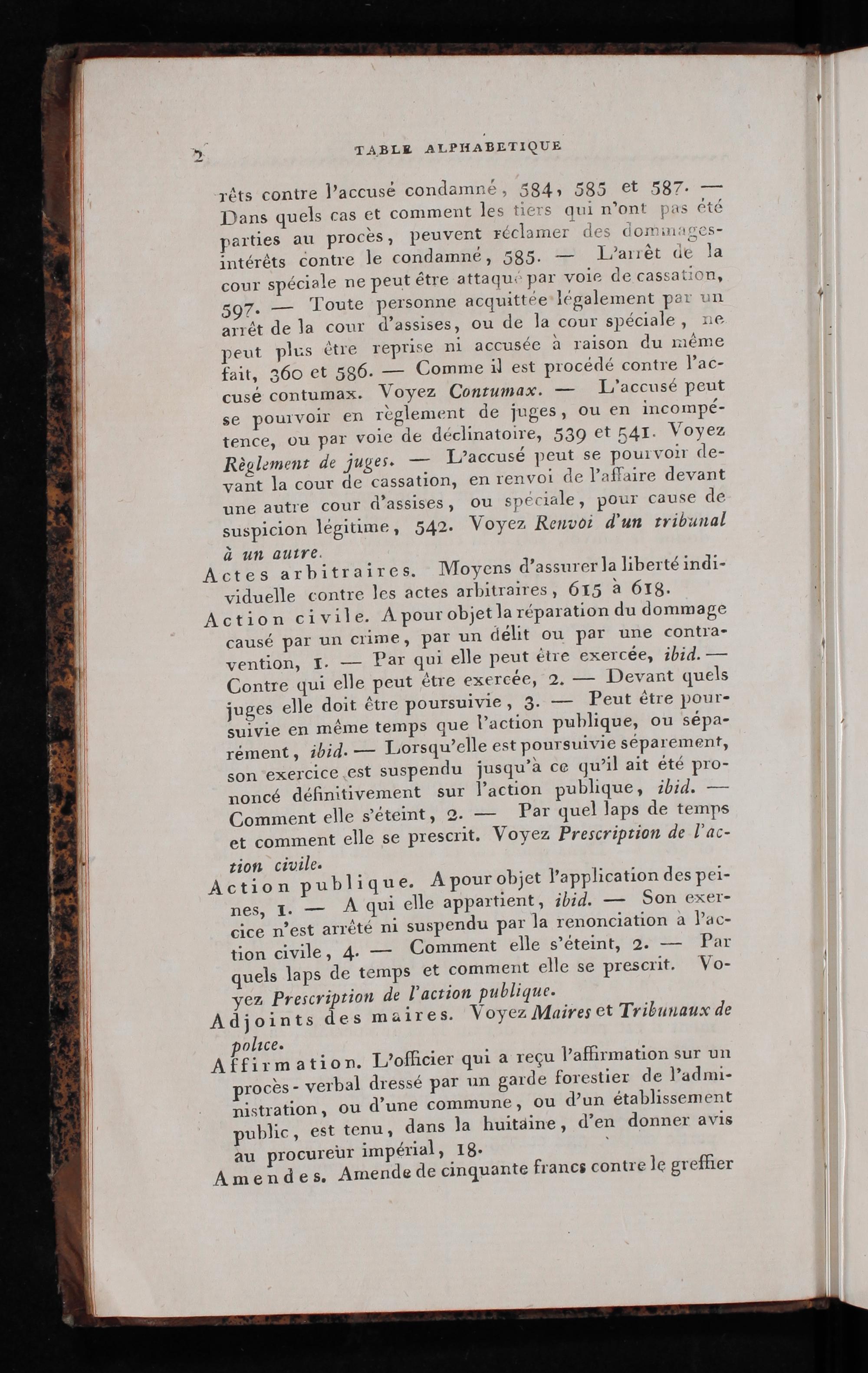 rêts contre l’accusé condamné, 584, 585 et 587.— Dans quels cas et comment les tiers qui n’ont pas été parties au procès, peuvent réclamer des dominages- intérêts contre le condamné, 585.— L'arrêt«