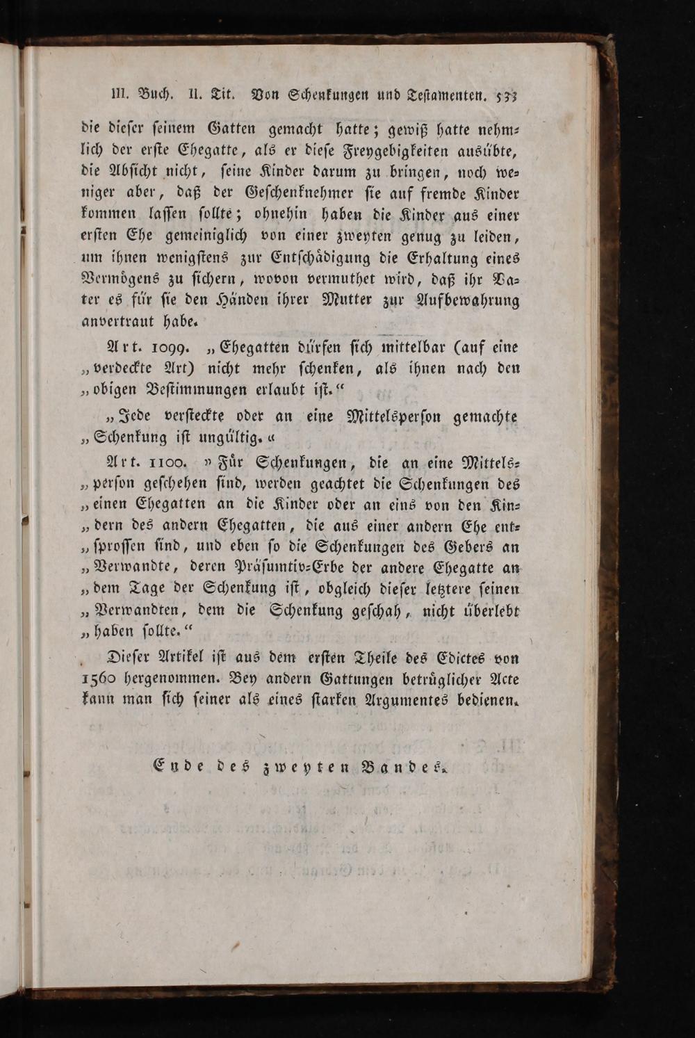 Art. 1099.„Ehegatten dürfen ſich mittelbar(auf eine „verdeckte Art) nicht mehr ſchenken, als ihnen nach den „obigen Beſtimmungen erlaubt iſt.“