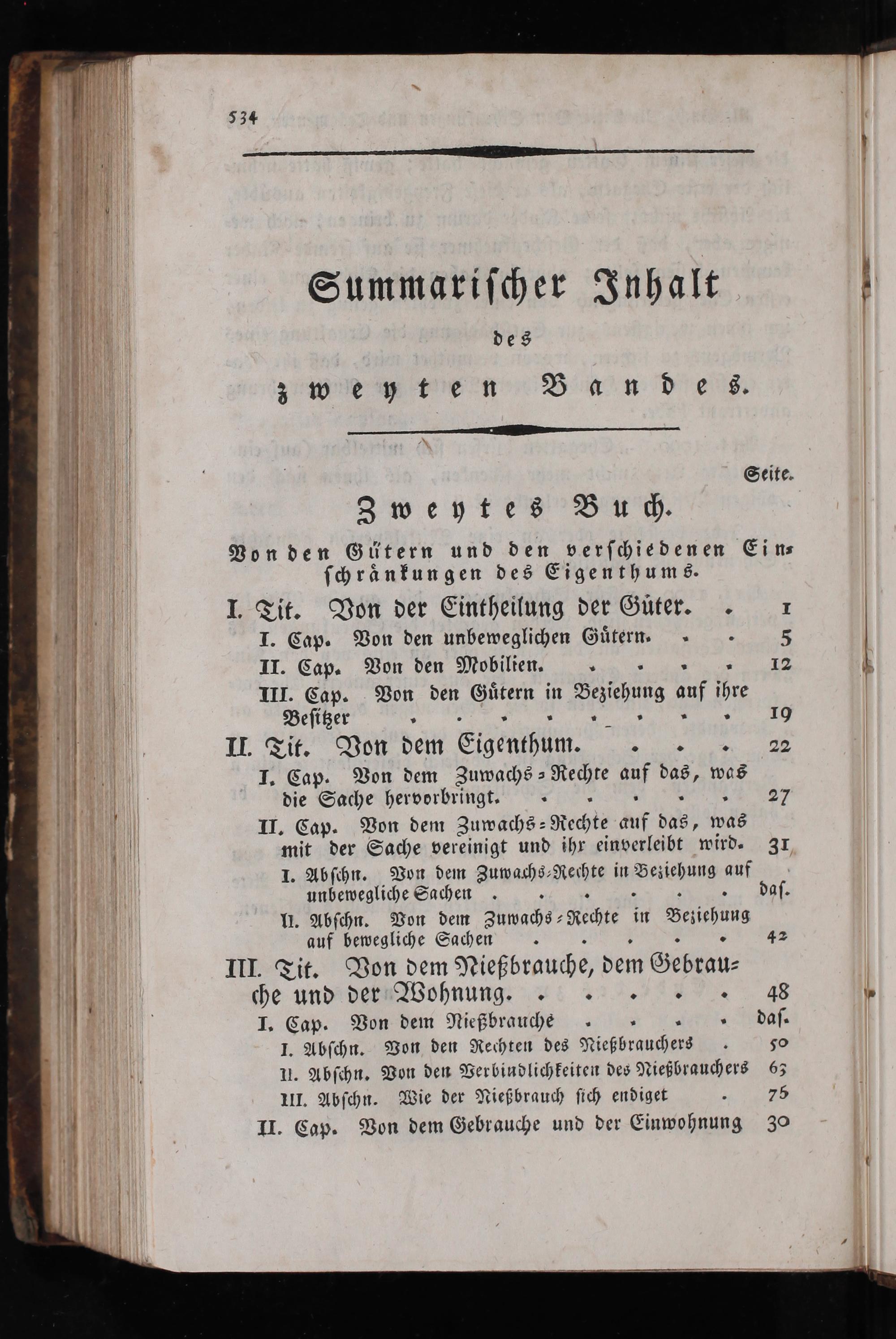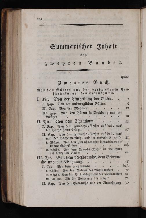 I. Tit. Von der Eintheilung der Guͤter. 17 I. Cap. Von den unbeweglichen Guͤtern. 5 II. Cap. Von den Mobilien. III. Cap. Von den Sl in Beziehung auf ihre