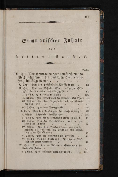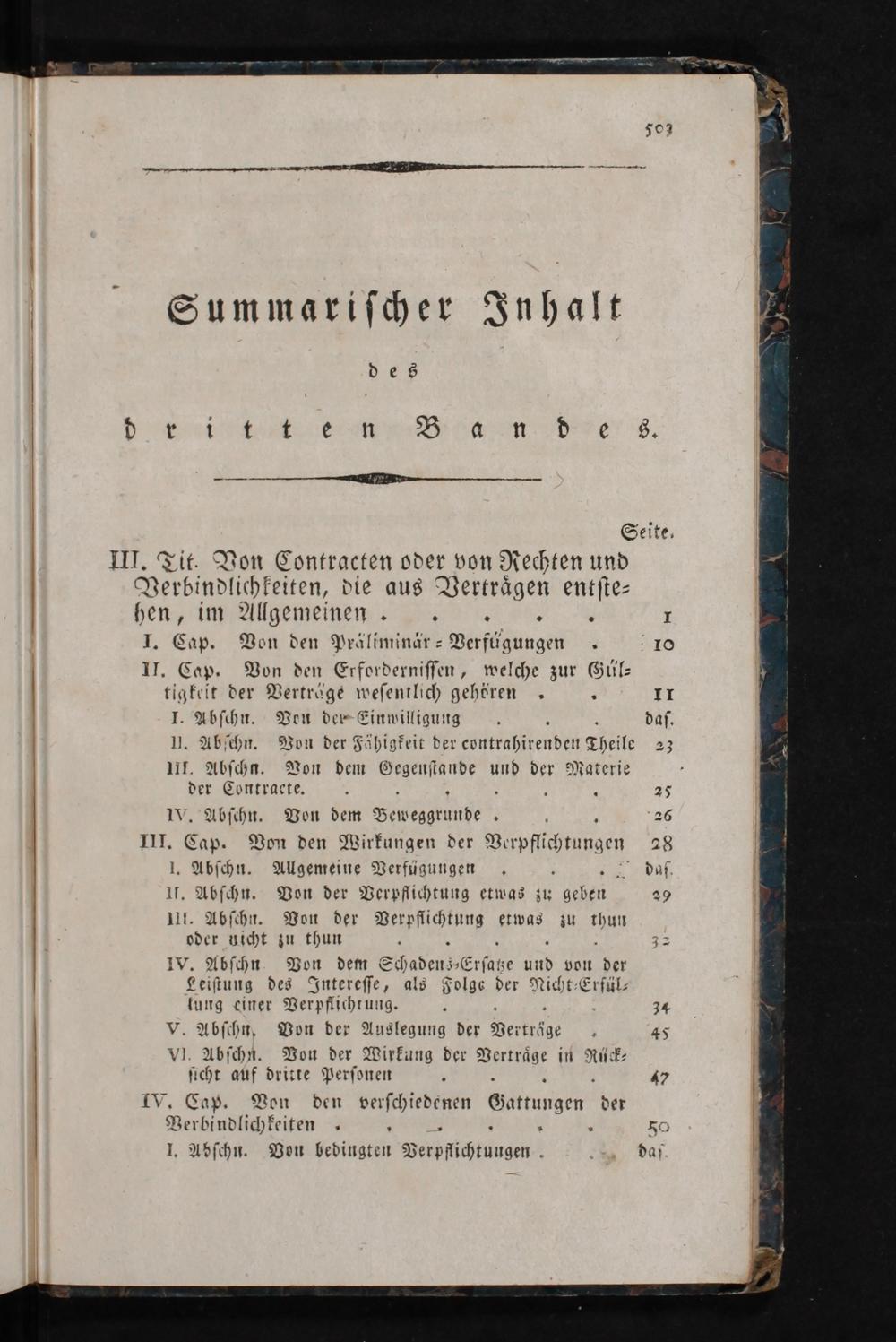 Seite. III. Tit. Von Contracten oder von Rechten und Verbindlichkeiten, die aus Vertraͤgen entſte—