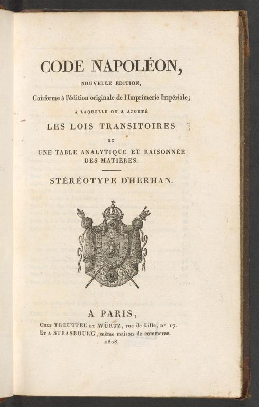 Code Napoléon : À Laquelle On A Ajouté Les Lois Transitoires Et Une Table Analytique Et Raisonnée Des Matières / Stéréotype D'Herhan