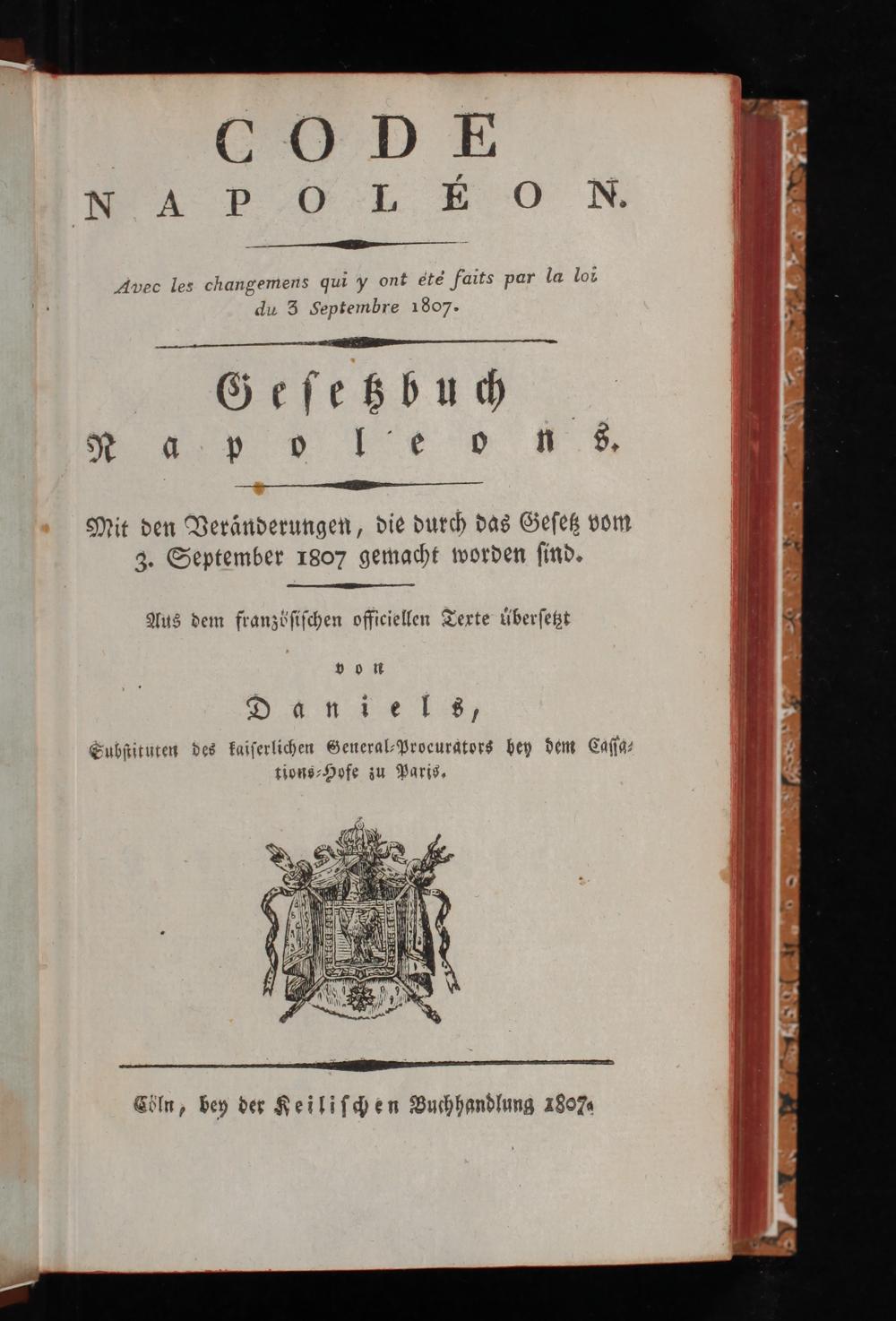 Code Napoléon : Avec les changements qui y ont été faits par la loi du 3 Septembre 1807 / Aus dem französischen officiellen Texte übersetzt von Daniels, Substituten des kaiserlichen General-Procurateurs bey dem Cassations-Hofe zu Paris
