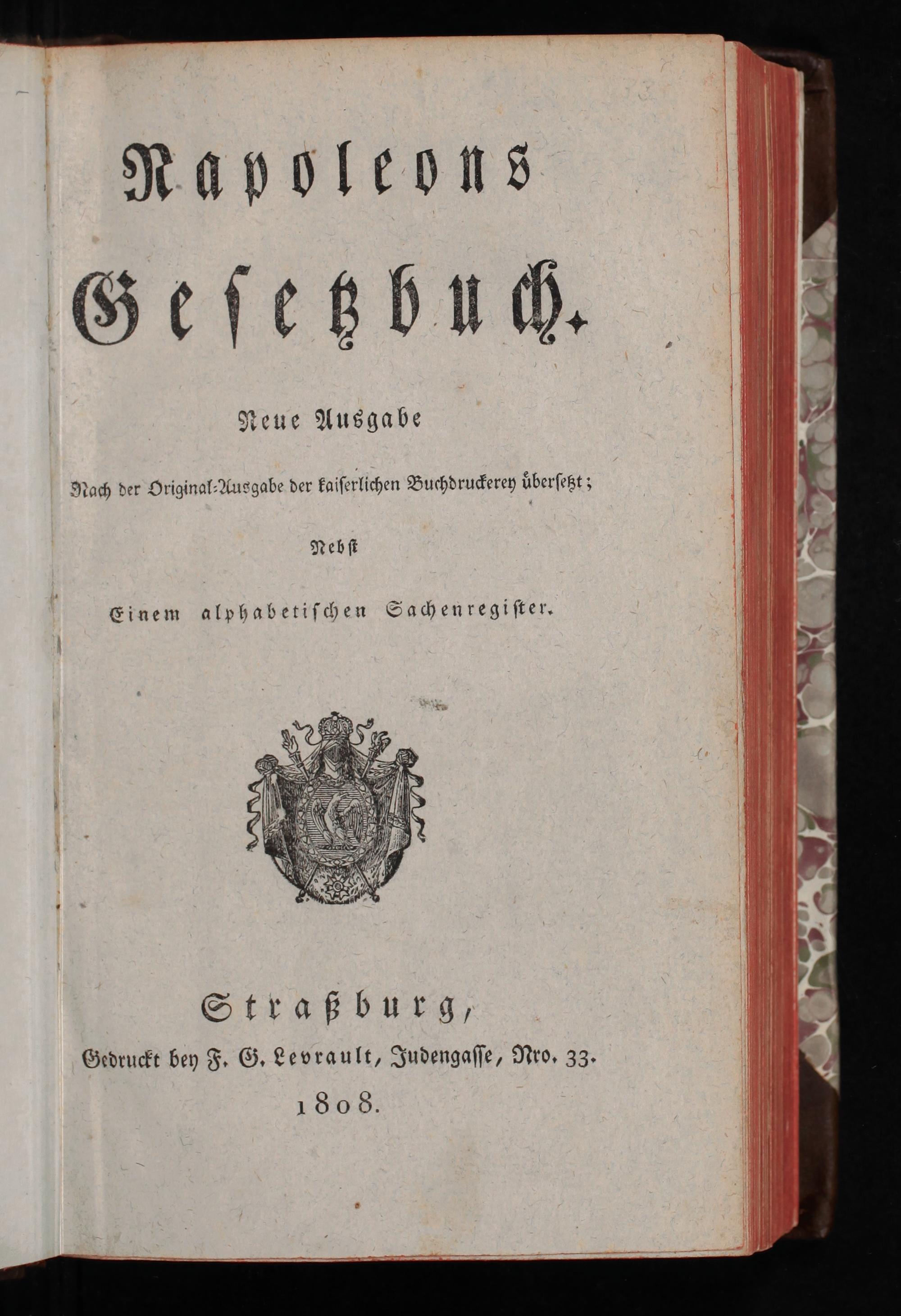 Napoleons Gesetzbuch : Nebst einem alphabetischen Register / Nach der Original-Ausgbe der kaiserlichen Buchdruckerey übersetzt