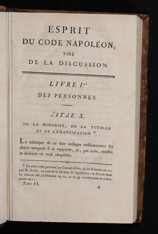 Tome Sixième (1808) Contenant Le Titre De la Minorité, de la Tutelle et de l'Émancipation