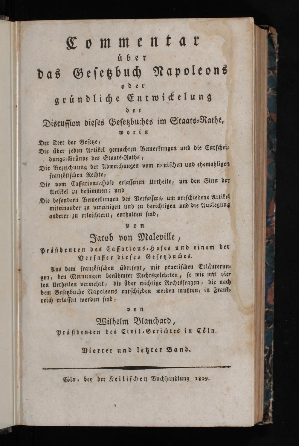 Commentar über das Gesetzbuch Napoleons oder gründliche Entwickelung der Discussion dieses Gesetzbuches im Staats-Rathe