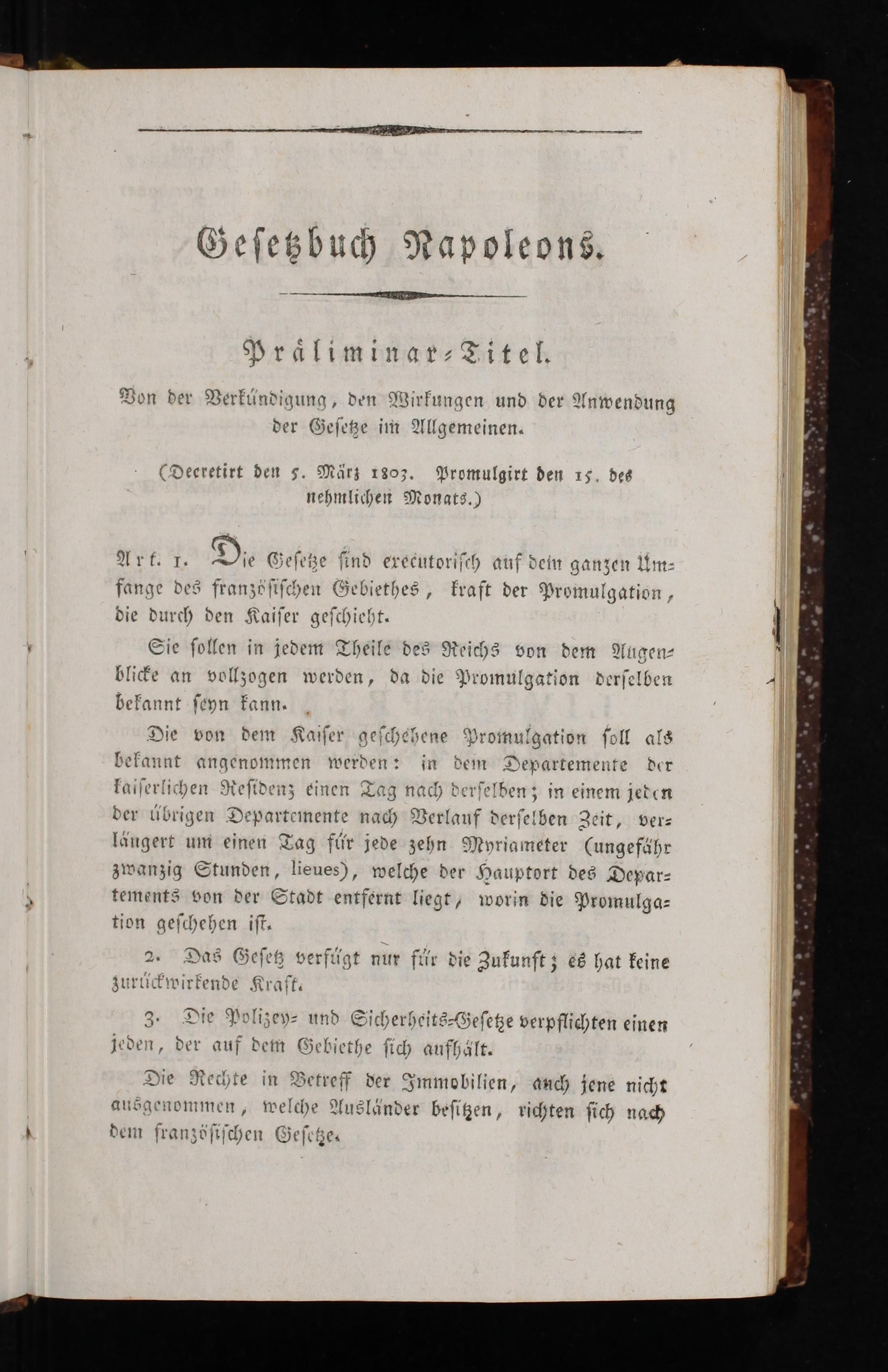 CDecretirt ben s. Mars 1803. Mromulgirt den rs, bes nebmliher Monats.)