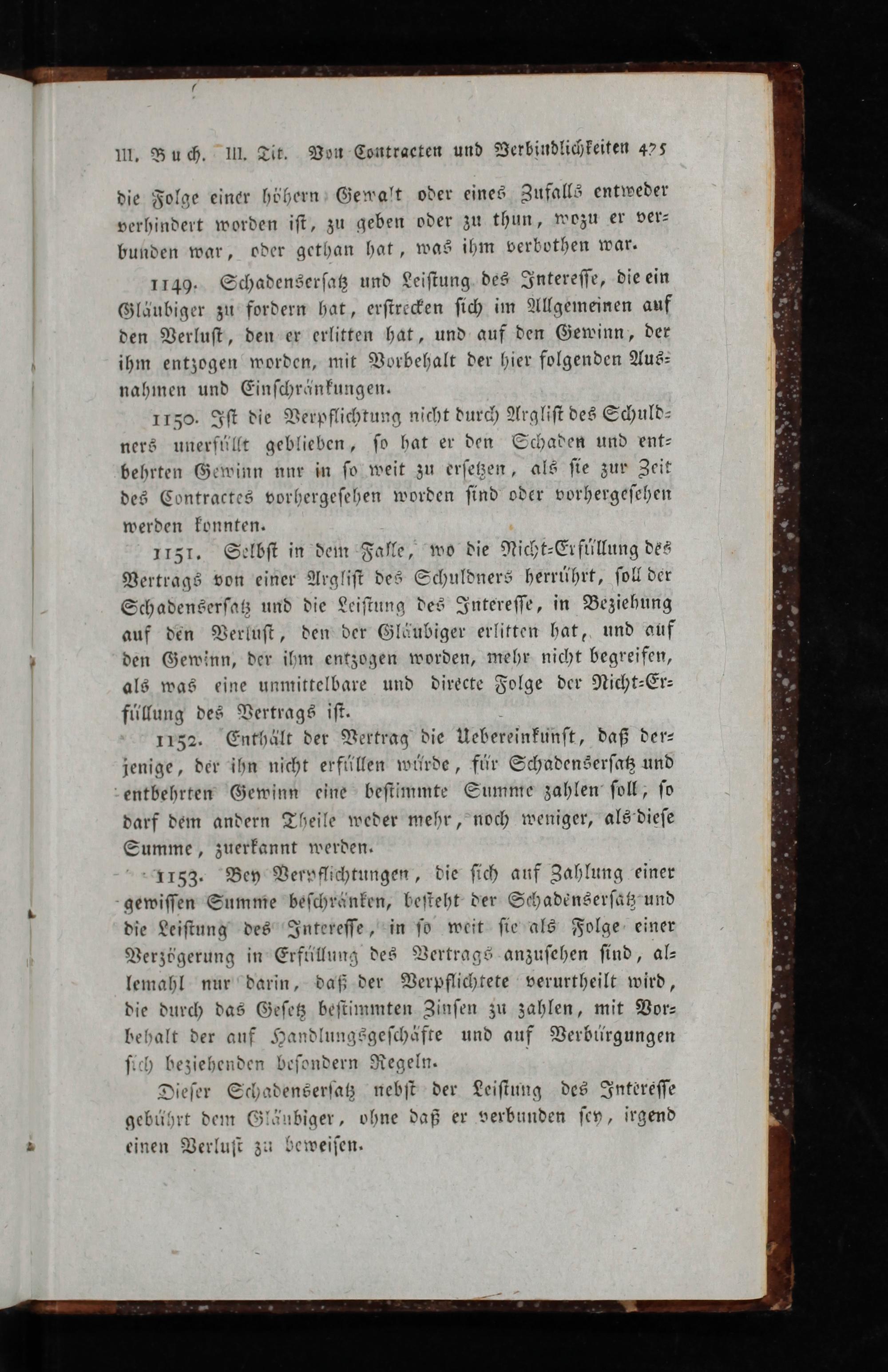 1150. Gft die Verpflibtung nicht burd Mrgliff bes Eduld- ner8 unerfulft geblieben, fo bat er den Gchaïen und ent: bebrten Gevinn nnr in fo weit su crfefen, als fie sur 3cit deg Gontractes borbergefeben worben find oder vorbergcefchen werden Éonnten.
