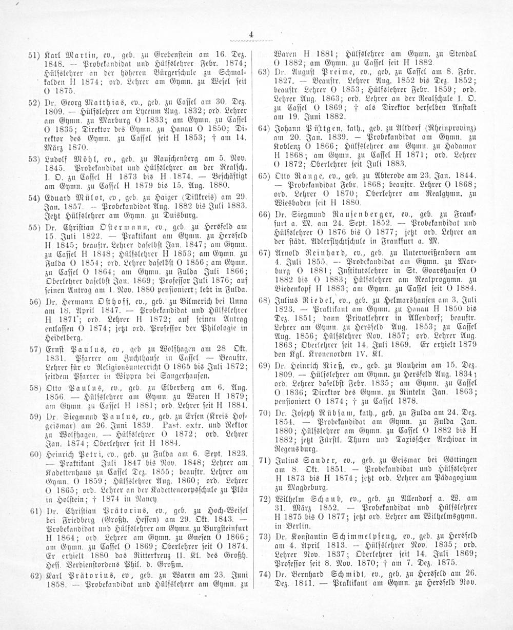 53) Ludolf Möhl, ev., geb. zu Rauſchenberg am 5. Nov. 1845. Probekandidat und Hülfslehrer an der Realſch. I. O. zu Caſſel H 1873 bis H 1874.— Beſchäftigt am Gymn. zu Caſſel H 1879 bis 15. Aug. 1880.