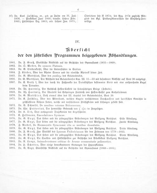 Aberſicht der den jährlichen Brogrammen beigegebenen Abhandlungen.