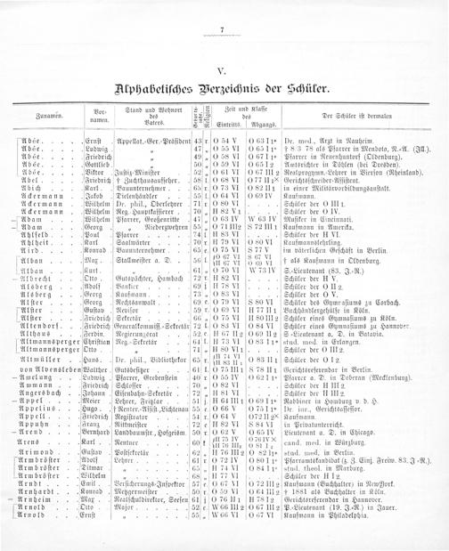 Alsberg. Adolf Bankier...69 j H 78 VI.... Schüler der 0 II2.