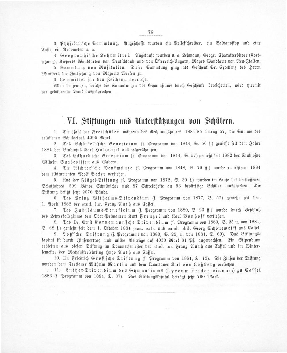 3. Das Eckhard'ſche Beneficium(ſ. Programm von 1844, S. 57) genießt ſeit 1882 der Studioſus Wilhelm Suabediſſen aus Wabern.