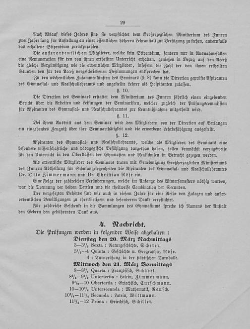 Als ordentliche Mitglieder des Seminars traten mit Genehmigung Großherzoglichen Miniſteriums des Innern Abtheilung für Schulangelegenheiten die Aſpiranten des Gymnaſial⸗ und Realſchullehramtes Dr. Otto Zimmermann und Dr. Chriſtian Röſe ein.