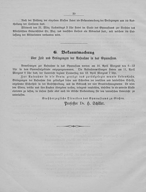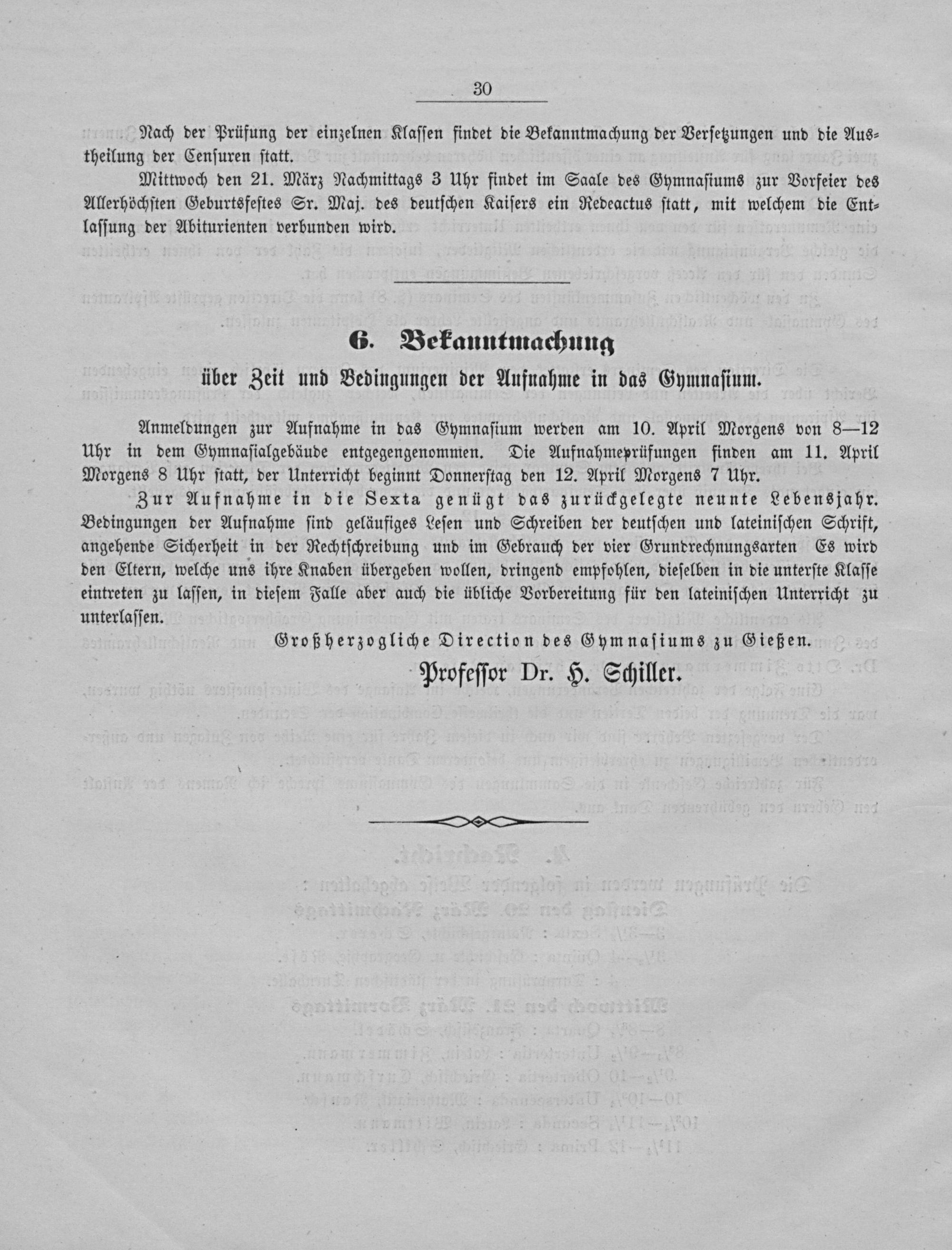 6. Bekanntmachung über Zeit und Bedingungen der Aufnahme in das Gymnaſium.