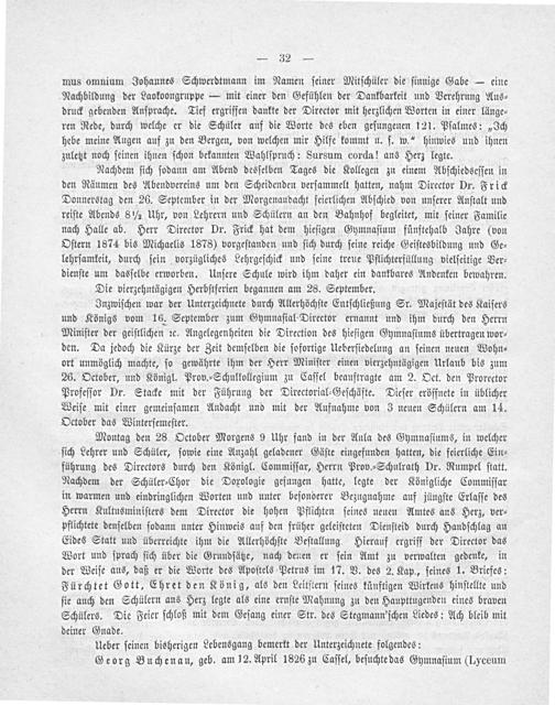 Georg Buchenau, geb. am 12. April 1826 zu Caſſel, beſuchte das Gymnaſium(Lyceum